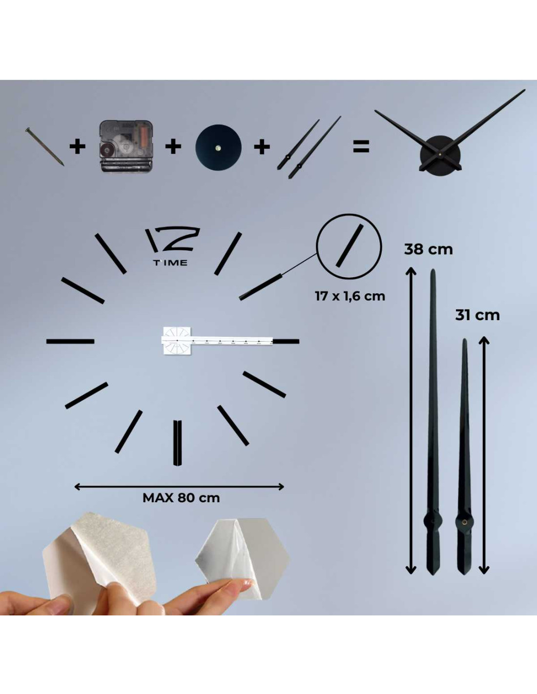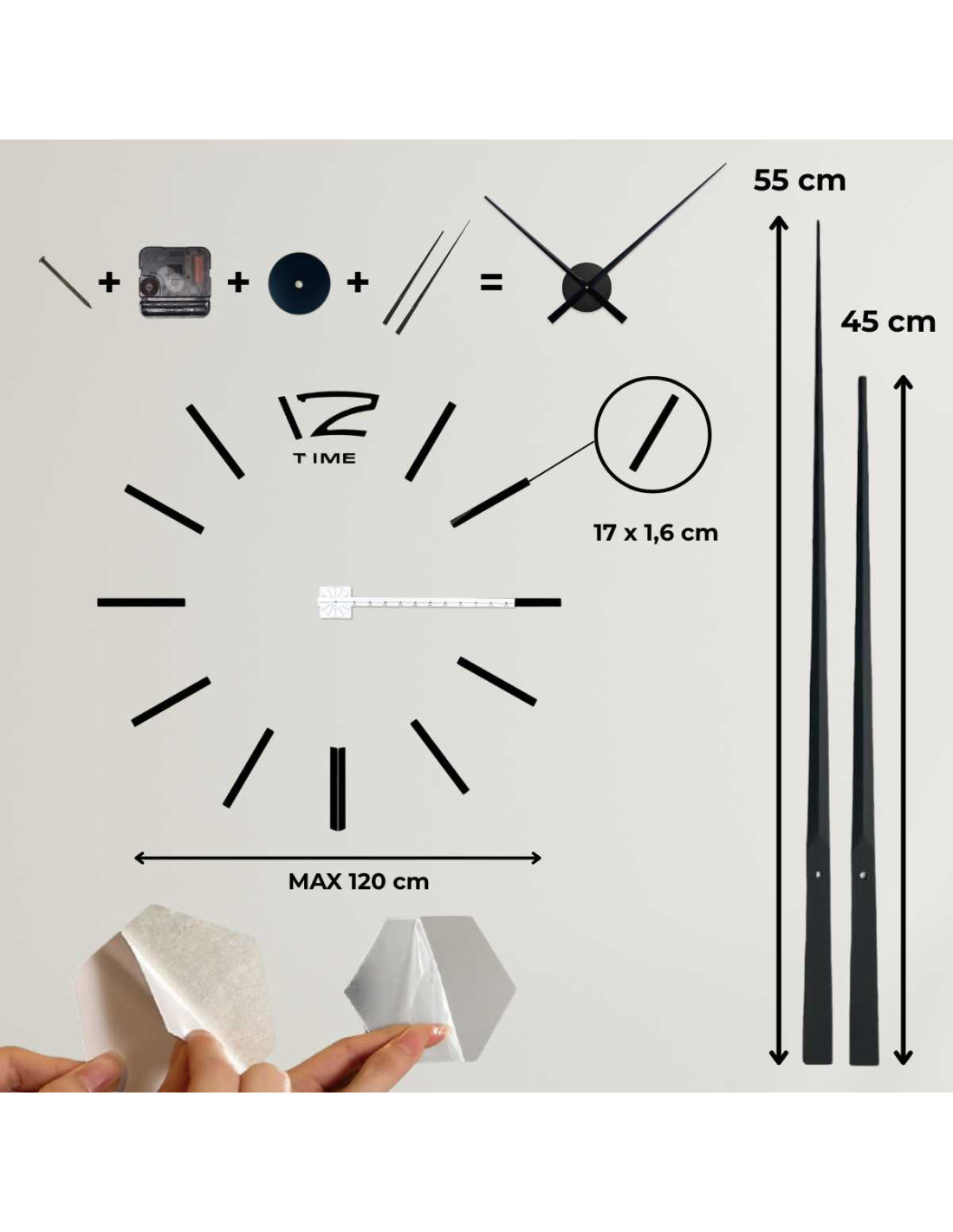 Díky nastavitelnému průměru až do 120 cm se tyto moderní hodiny přizpůsobí každé místnosti – ať už se jedná o obývací pokoj, ložnici, kancelář nebo vstupní halu.