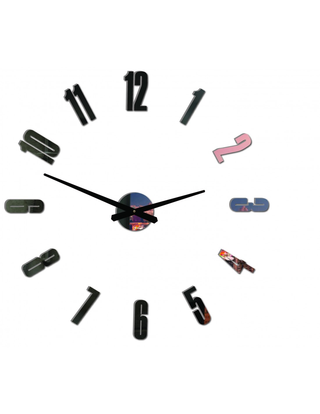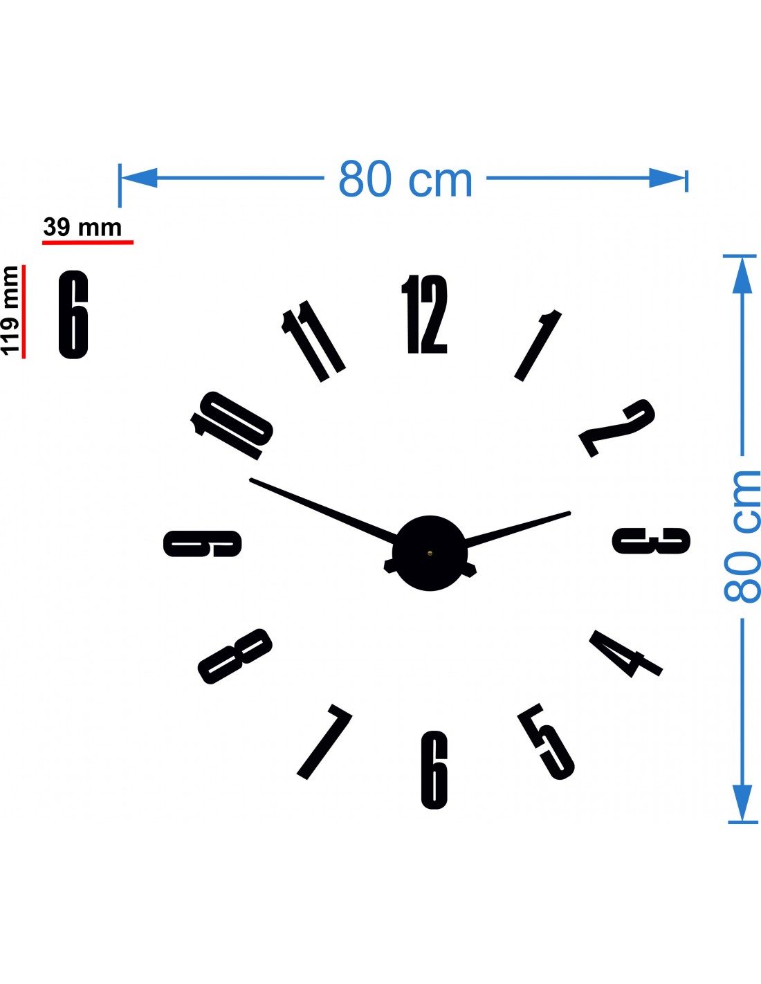 Rozměry nálepky: 800 x 800 mm možnost zvětšovat až 1300 x 1300 mm. Rozměry hodinového strojku: 100 x 100 mm Délka ručiček: 30 - 40 cm.