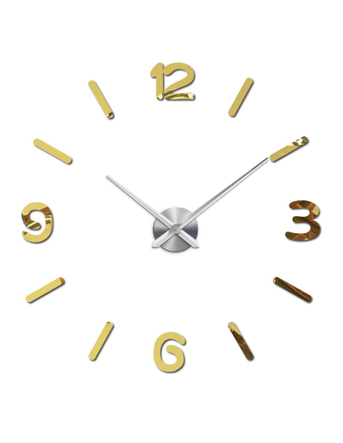 Moderní nástěnné hodiny DIY z plexiskla s nastavitelným průměrem až 130 cm, tichým chodem a jednoduchou montáží bez vrtání.