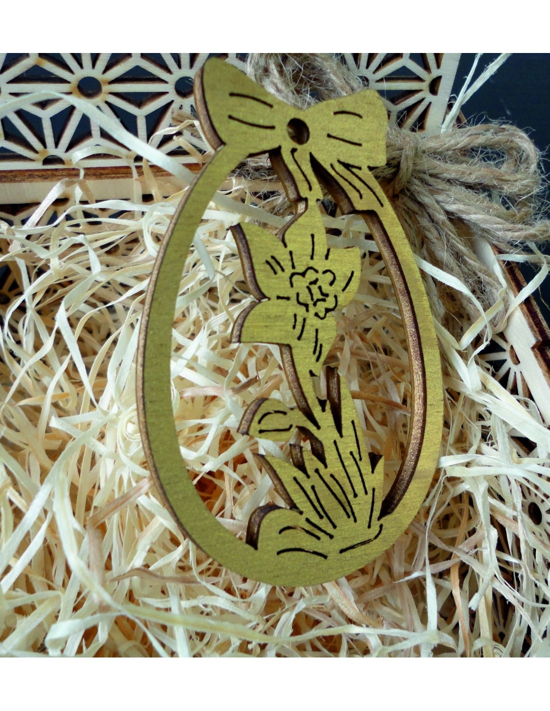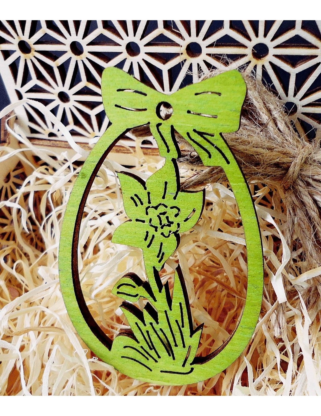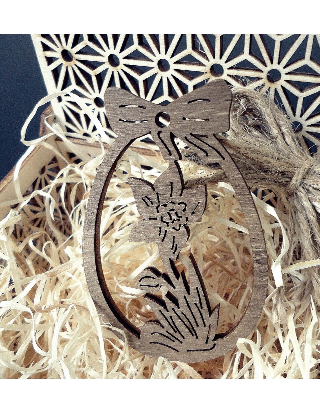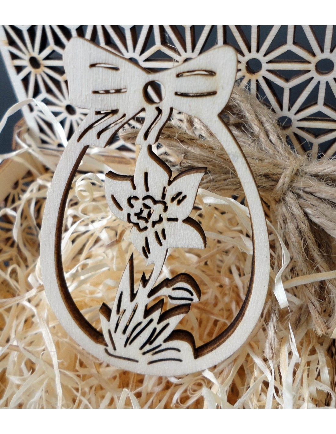 Oživte svůj domov s tímto jedinečným dekorativním dřevěným vajíčkem, které je ideálním doplňkem pro každou příležitost. Vajíčko je vyrobeno z kvalitního dřeva a má elegantní vyřezávaný design, který zobrazuje květinový motiv a mašli . Tato kombinace přidává vajíčku půvab a šarm. Vyřezávaný motiv květu s mašlí je nejen esteticky příjemný, ale i symbolický, což z něj činí ideální prvek pro oslavy Velikonoc nebo pro dekoraci vnitřních prostor. Vajíčko je vyrobeno z kvalitního dřeva překližky, která zaručuje dlouhou životnost a odolnost, přičemž jeho přírodní vzhled dodává útulný a teplý nádech. Můžete jej jednoduše postavit na stůl, polici nebo jej využít k vytvoření aranžmá s jinými dekoracemi.