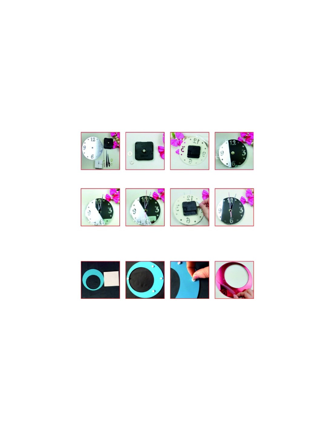Ostatní části zrcadlových hodin v podobě číslic nebo jiných tvarů jsou vybaveny samolepícím povrchem, stačí jen nalepit na zeď nebo použít samolepící oboustranné pásky.