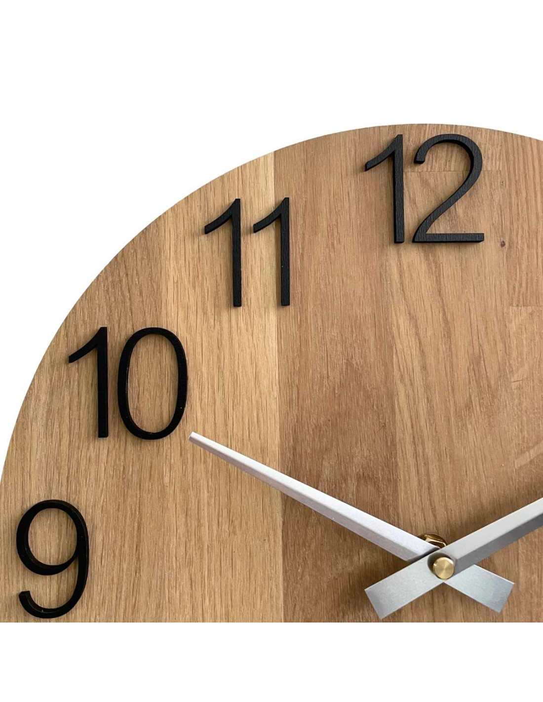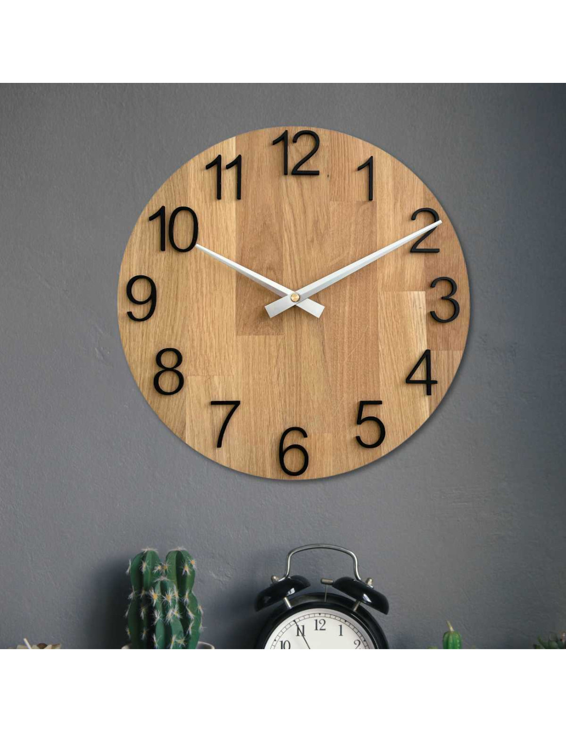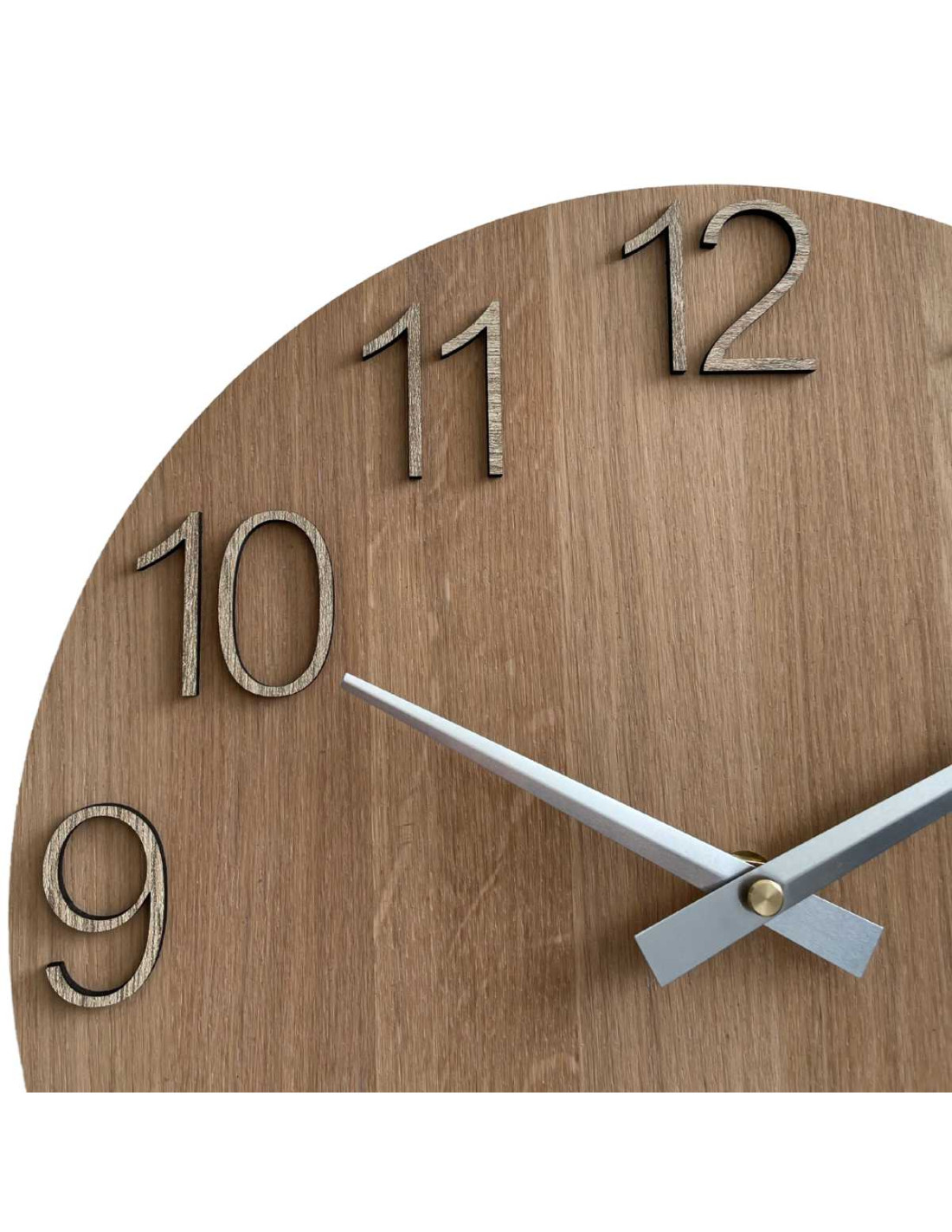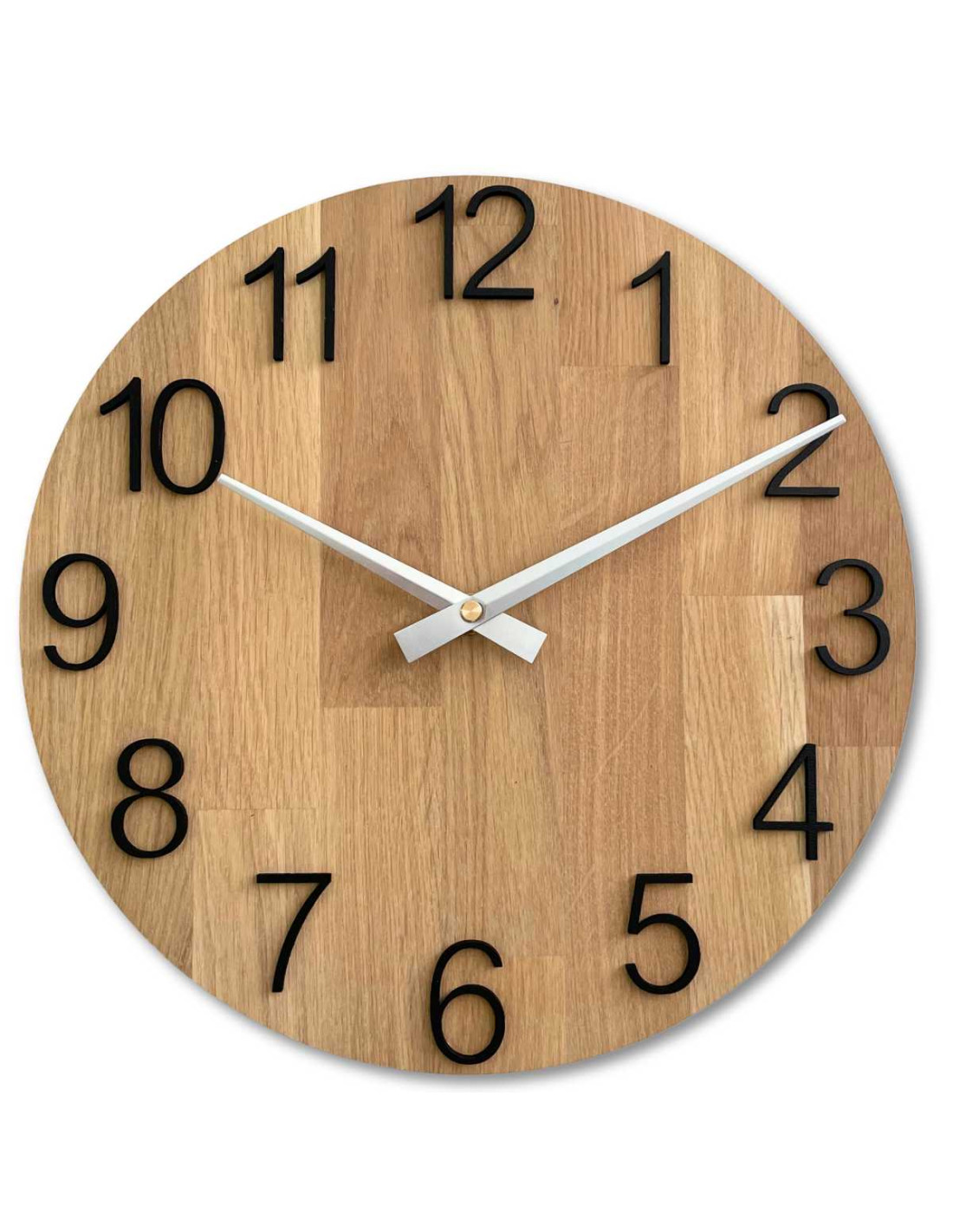 • Přírodní a elegantní design - Kombinace dubového dřeva a kovových ručiček vytváří moderní, ale zároveň nadčasový vzhled.