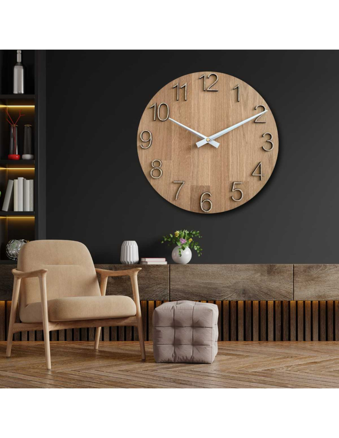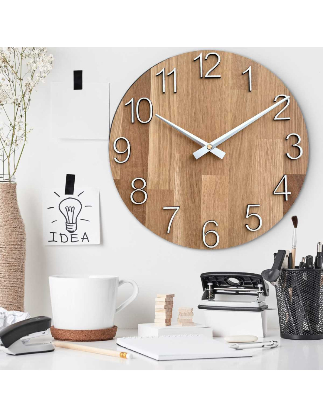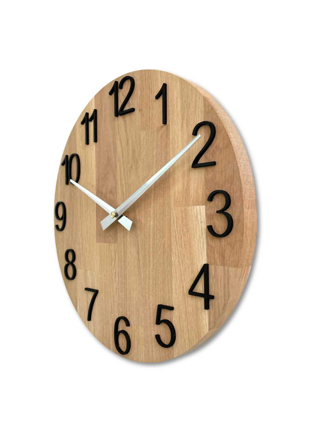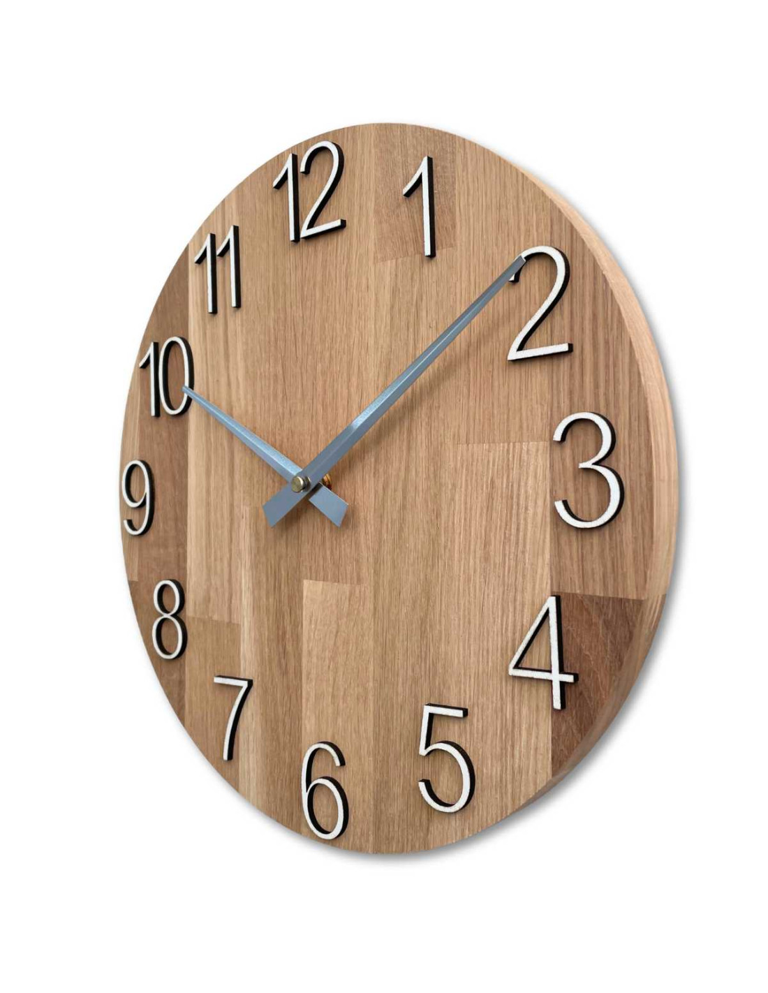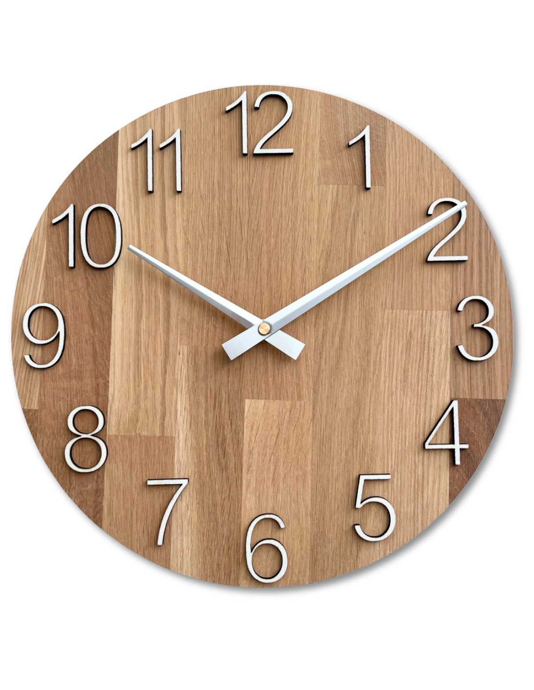 • Přírodní a elegantní design - Kombinace dubového dřeva a kovových ručiček vytváří moderní, ale zároveň nadčasový vzhled.