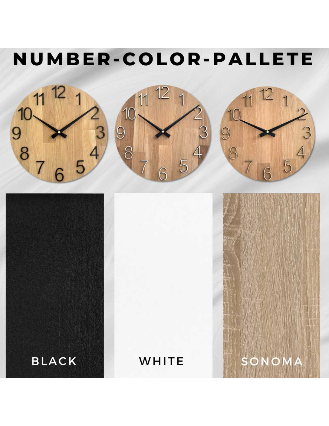 ➡️ Struktura: Každé hodiny jsou jedinečné, protože každé dřevo má jinou texturu, uspořádání vláken a odstín.