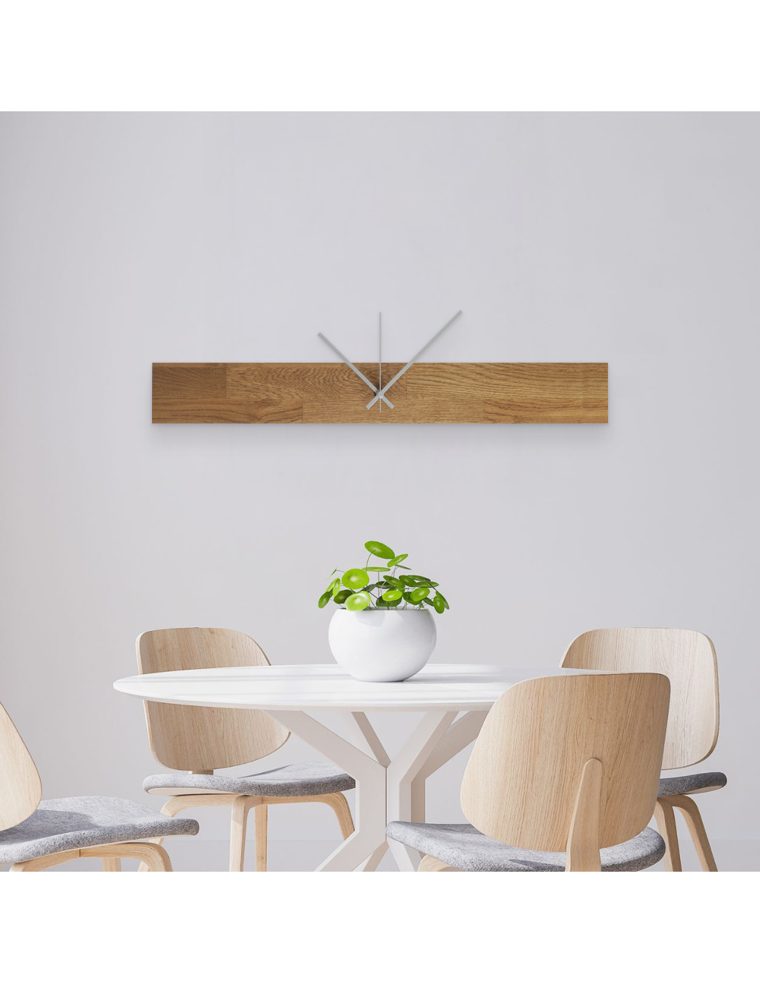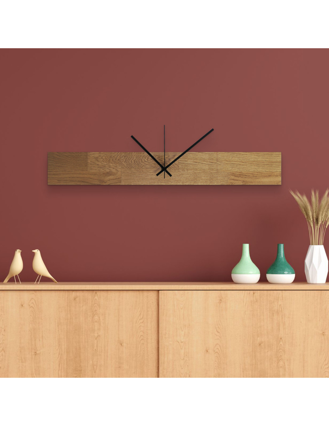 - Přírodní a elegantní design - Kombinace dubového dřeva a kovových ručiček vytváří moderní, ale zároveň nadčasový vzhled.