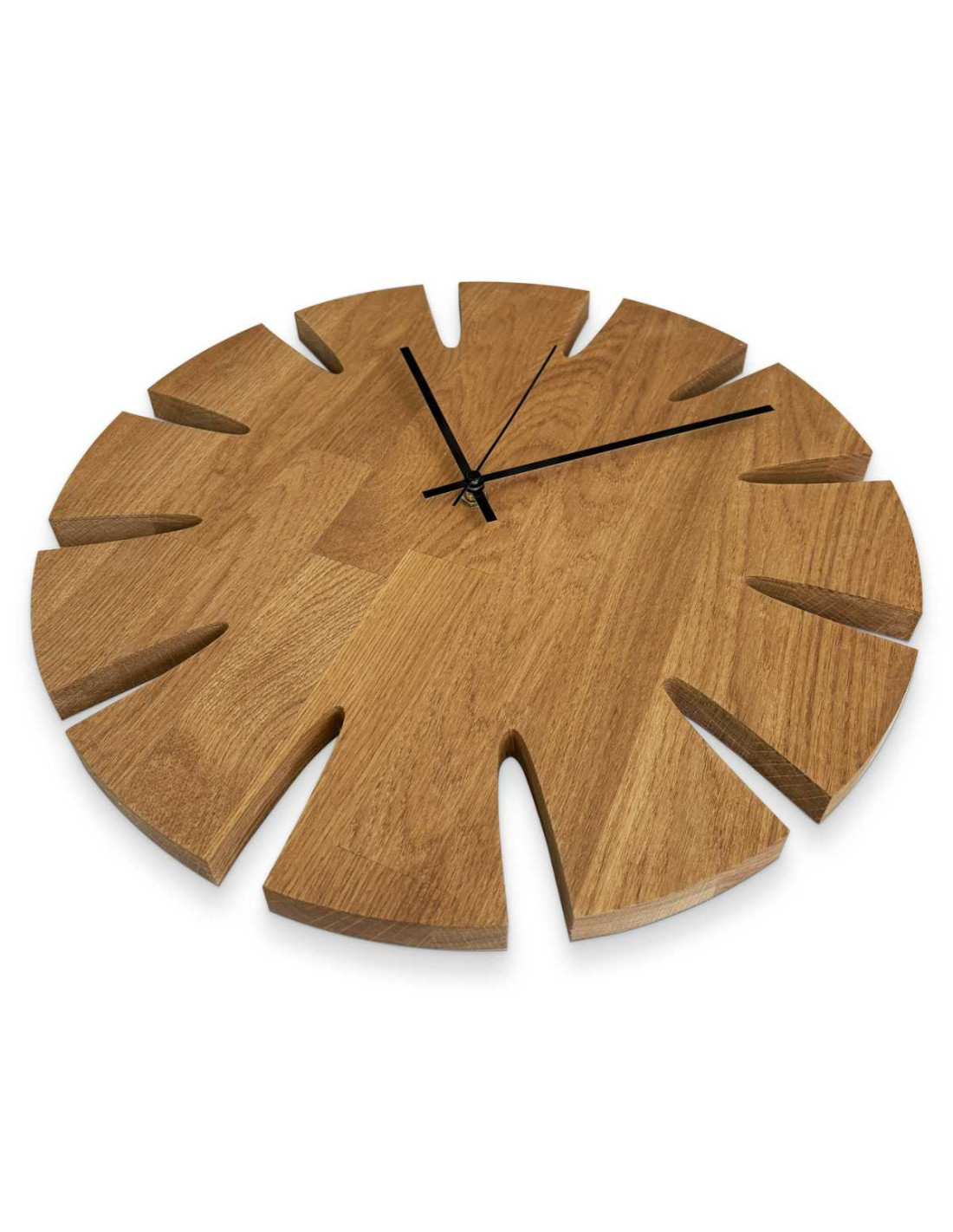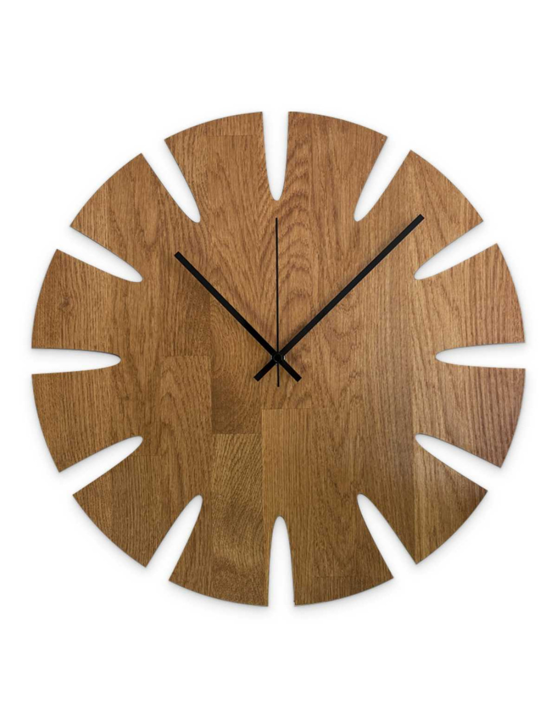 Dřevěné nástěnné hodiny s přírodním motivem představují spojení řemeslného zpracování a moderního stylu.