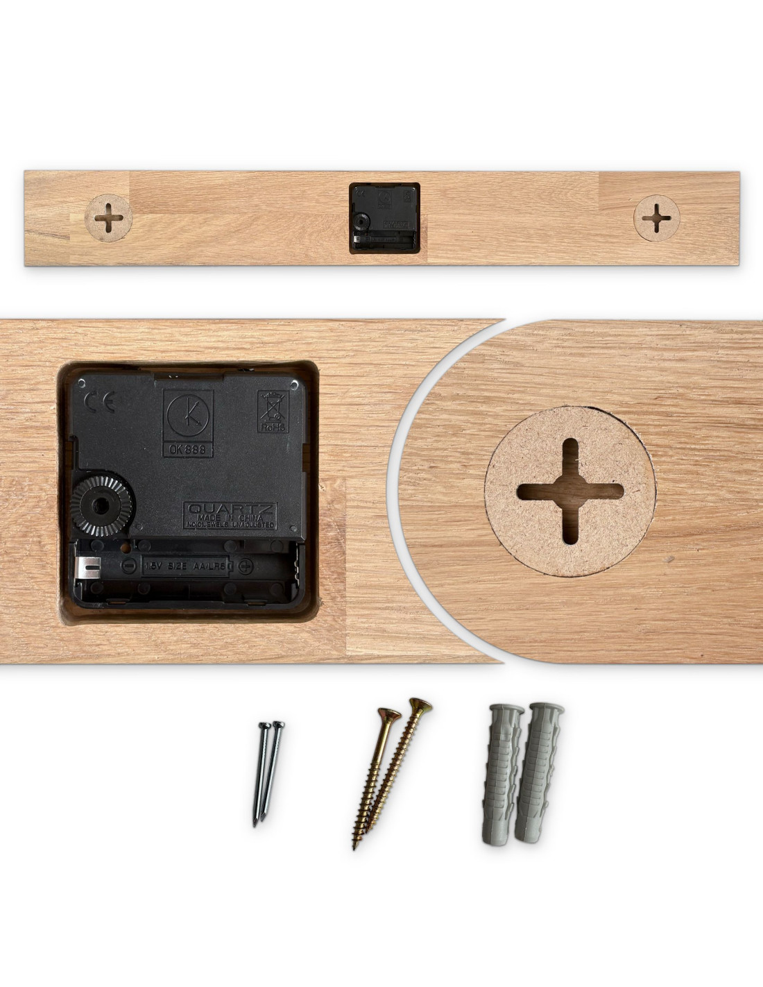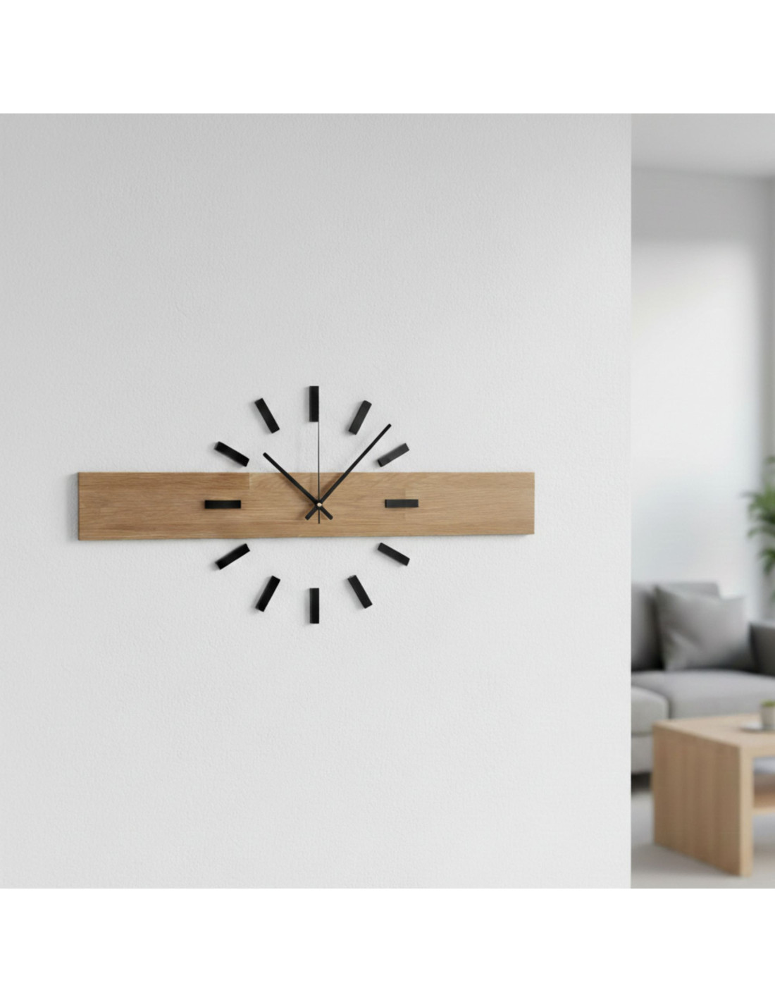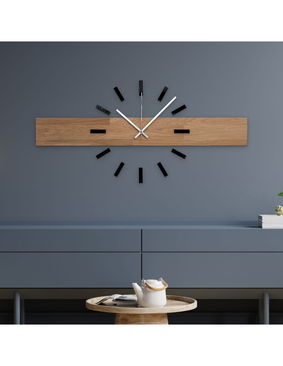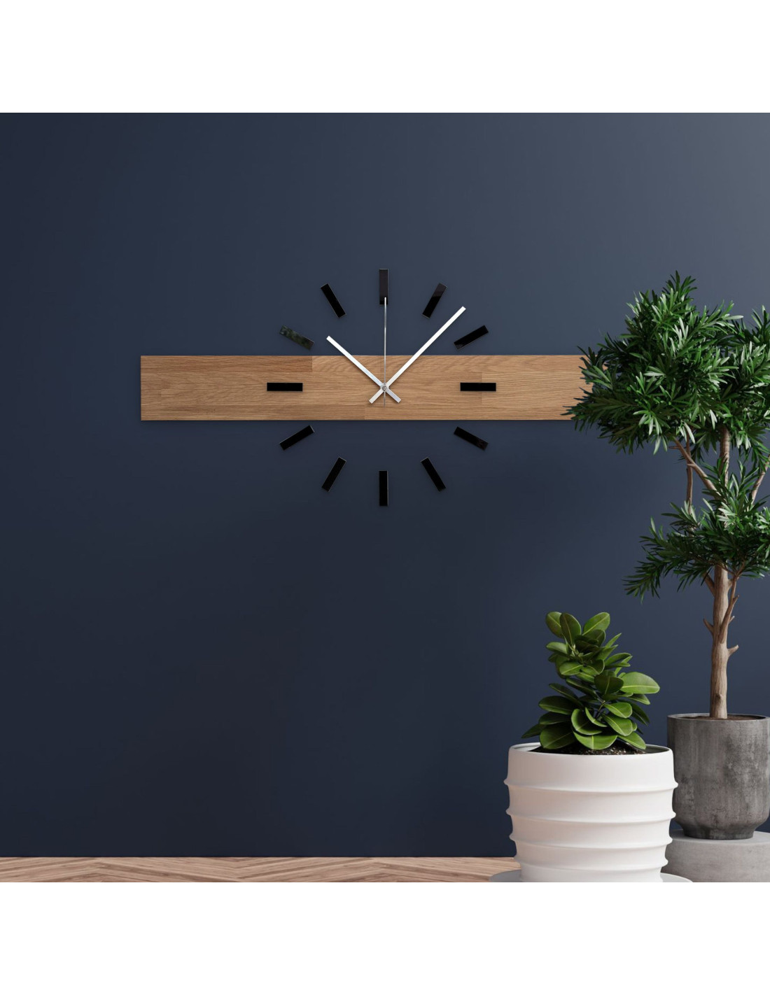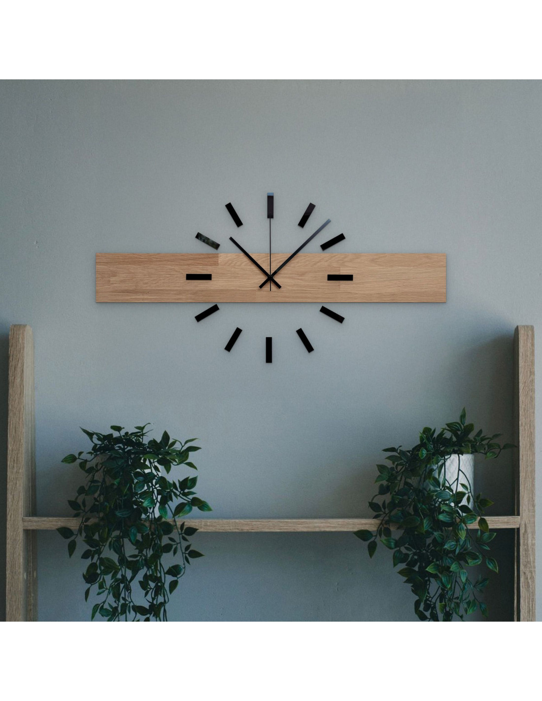- Přírodní a elegantní design - Kombinace dubového dřeva a kovových ručiček vytváří moderní, ale zároveň nadčasový vzhled.