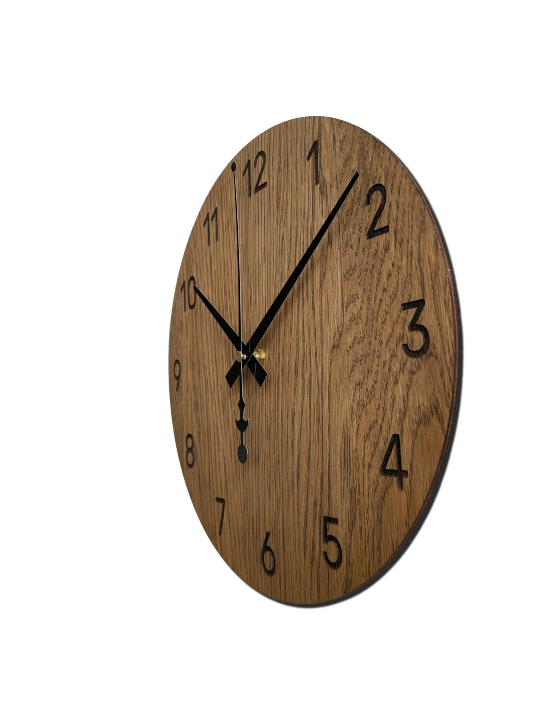 Moderní nástěnné hodiny z pravého dubového dřeva přinášejí spojení řemeslné kvality, ticha a nadčasové estetiky .