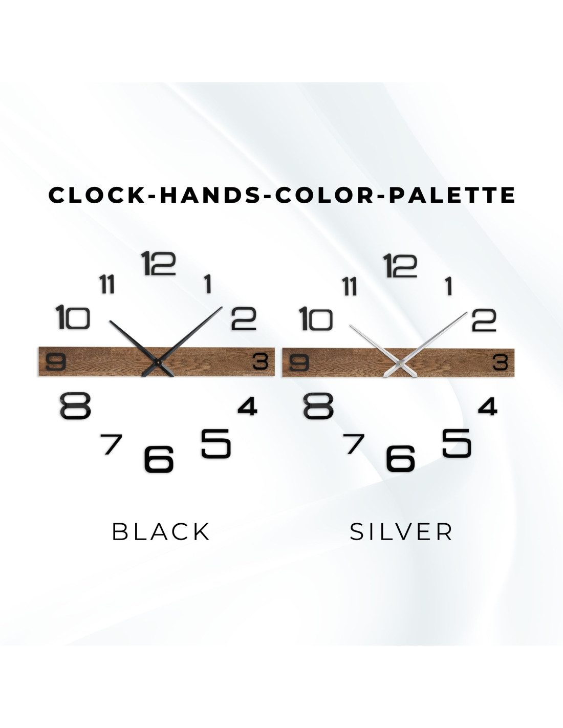 • Ručičky hodin: kovové stříbrné/černé – minutová ručička 31 cm (12,2 palce), hodinová ručička 39 cm (15,4 palce)
