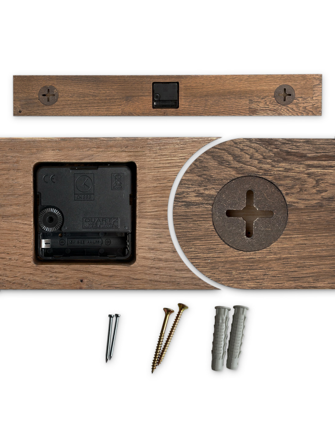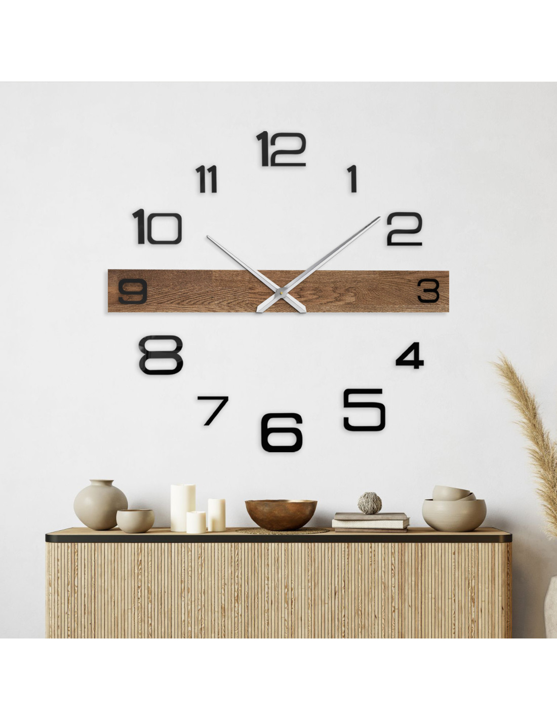 - Přírodní a elegantní design - Kombinace dubového dřeva a kovových ručiček vytváří moderní, ale zároveň nadčasový vzhled.