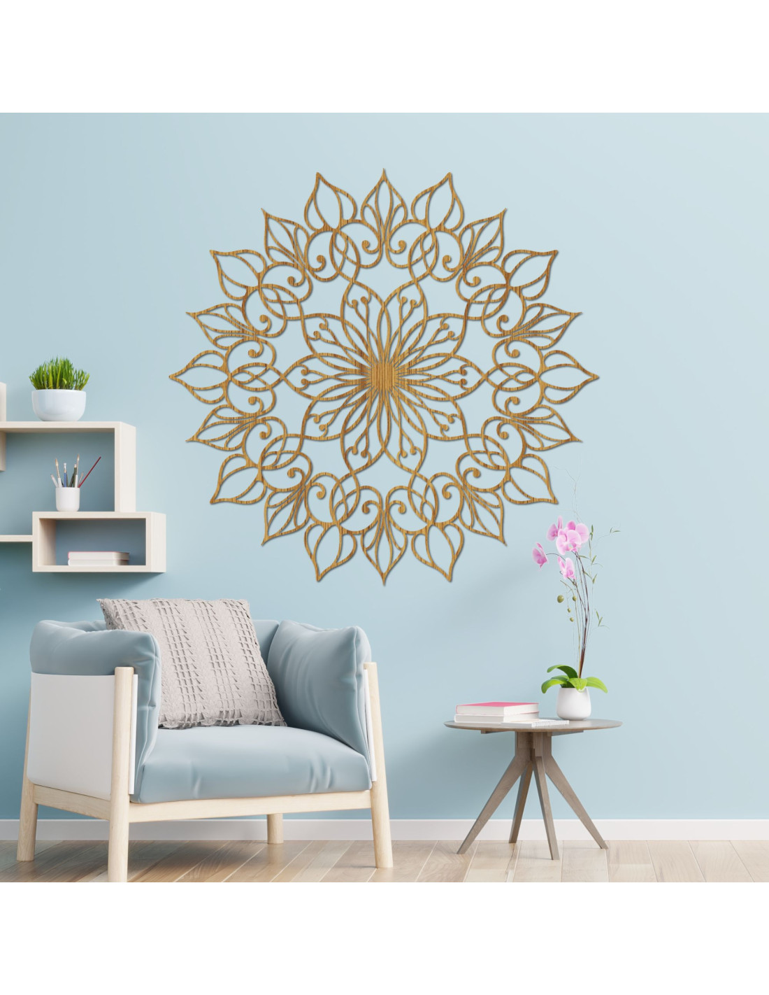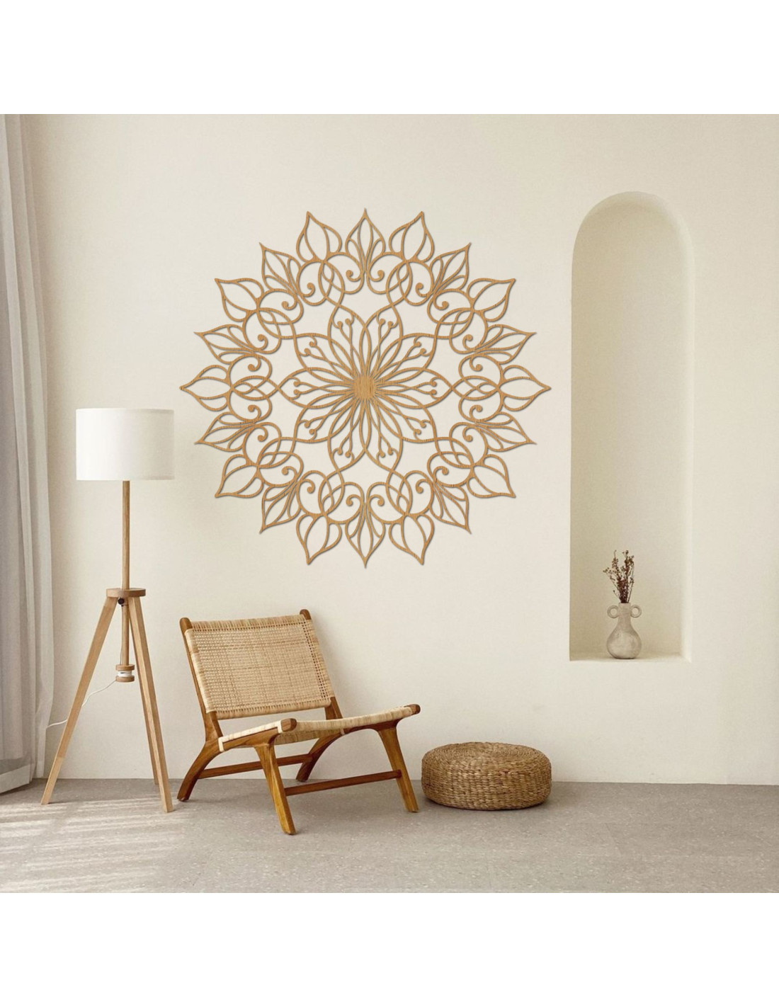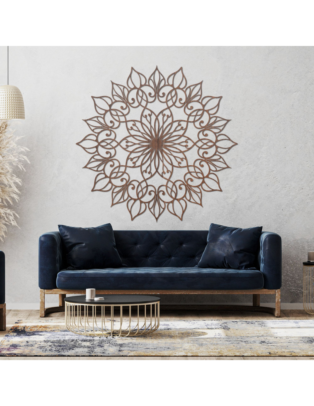Tento obraz zobrazuje fascinující mandalu s detailním a složitým vzorem. Její zlatá barva okamžitě přitahuje pozornost a vytváří luxusní atmosféru , která obohacuje prostor. Mandala symbolizuje harmonii a rovnováhu, povzbuzuje klid a meditaci. Je skvělým doplňkem do obývacího pokoje, pracovního prostoru nebo na zeď, která potřebuje umění. Tento umělecký kousek dokáže dodat interiéru výjimečný vzhled a inspirovat k zamyšlení. Obraz mandala, květ života je mocný symbol, který reprezentuje harmonii, jednotu a propojenost všeho, co nás obklopuje. Tento krásný vzor se skládá z navzájem propojených kruhů , které vytvářejí nádherný obraz, připomínající květinu.