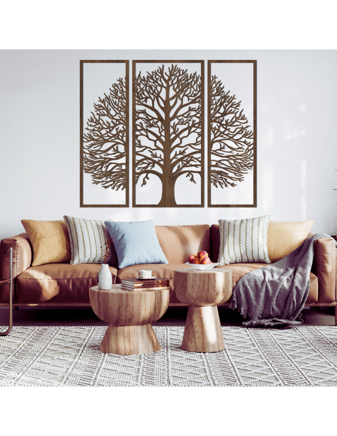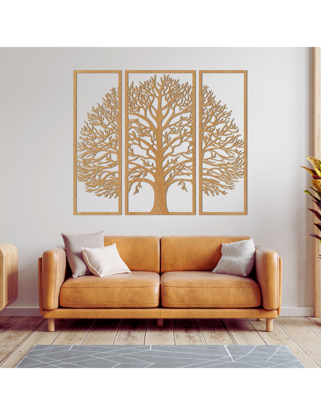 Třídílná dřevěná dekorace stromu života je elegantním a nadčasovým doplňkem , který přinese do vašeho interiéru harmonii a styl. Její jedinečný design spojuje přírodní krásu s moderním zpracováním , čímž vytváří působivý vizuální efekt.