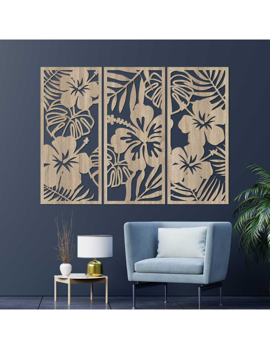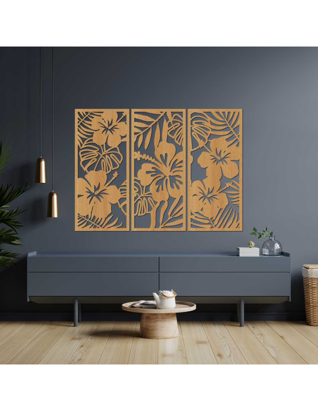 Design je inspirován přírodou a přináší svěžest, která stimuluje smysly. Pečlivě vyřezávané okvětní lístky a květy vytvářejí dynamickou kompozici plnou života. Tvarová vyváženost mezi jednotlivými částmi obrazu zaručuje estetickou harmonii. Ideální řešení pro milovníky čistých linií a botanické estetiky.