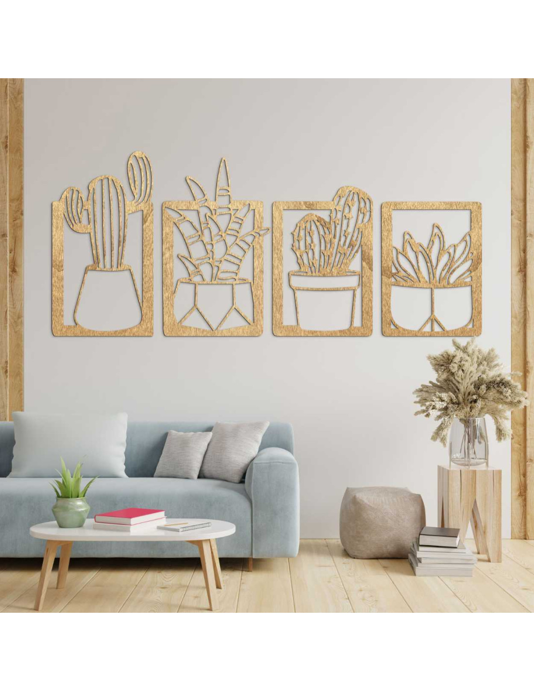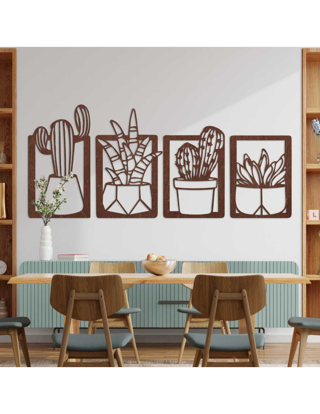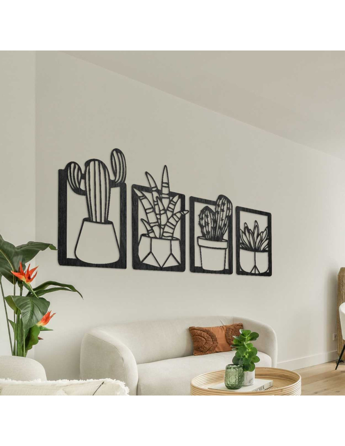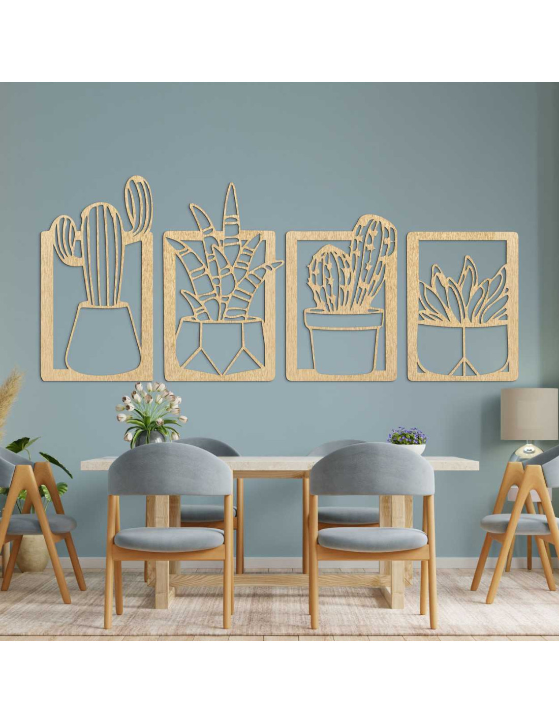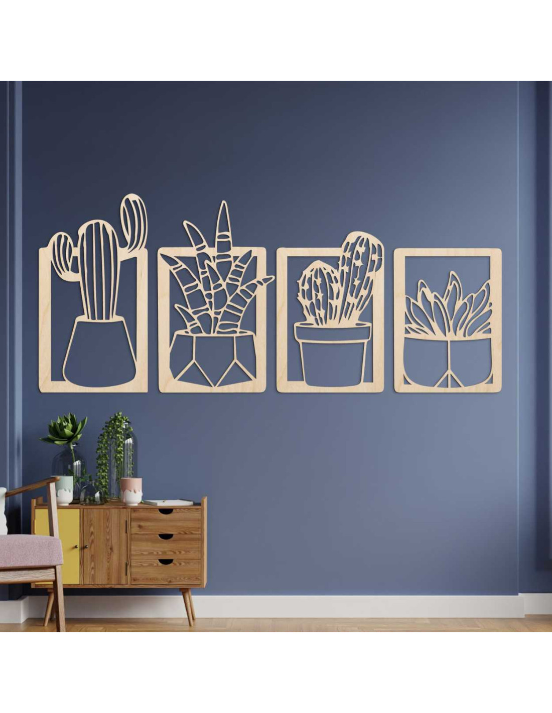 Dřevěná nástěnná dekorace se vzorem kaktusů a sukulentů oživí každou místnost svým originálním motivem rostlin.