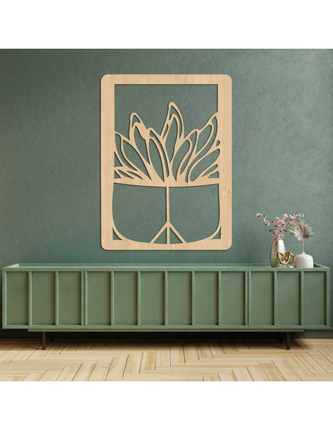 Dřevěný nástěnný obraz – Rostlina v květináči | Moderní dřevořezba do interiéru - GEERA