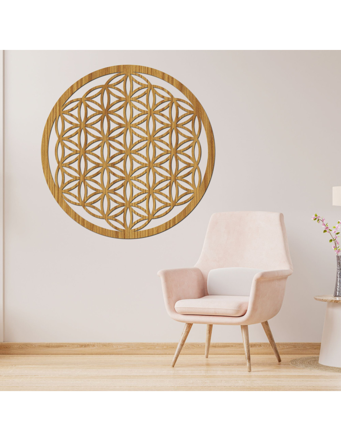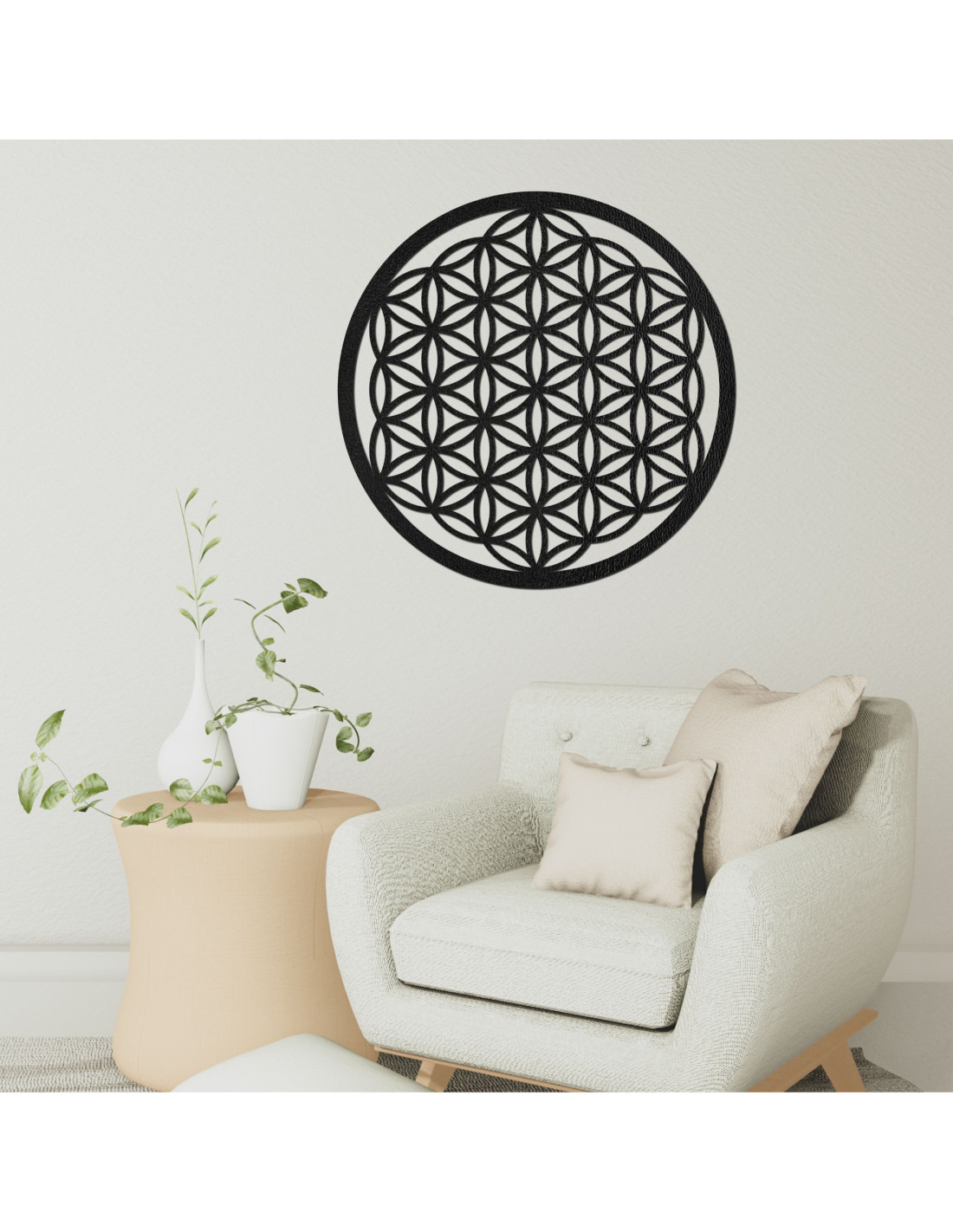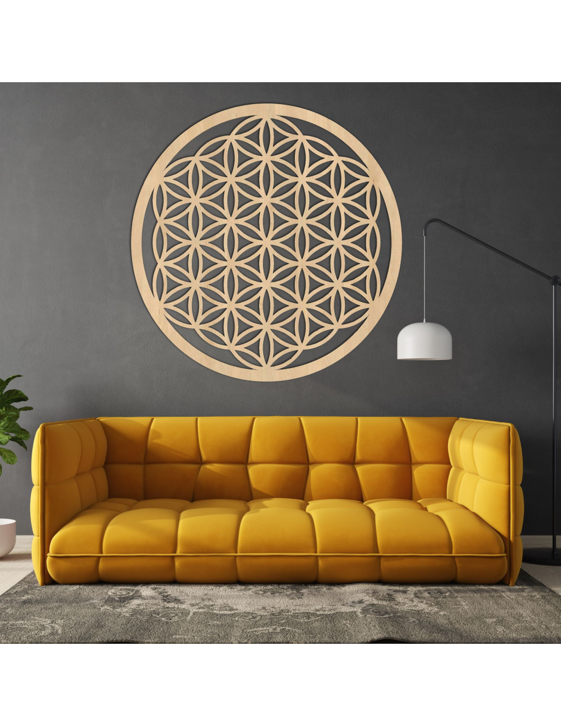 Design této mandaly je inspirován prastarým symbolem života , který se vyskytuje v různých kulturách a představuje základní principy vesmíru a života a věří se , že má schopnost zlepšovat energii prostoru a podporovat vnitřní klid. Květ života je symbol, který představuje harmonii, jednotu a propojenost všeho, co nás obklopuje .