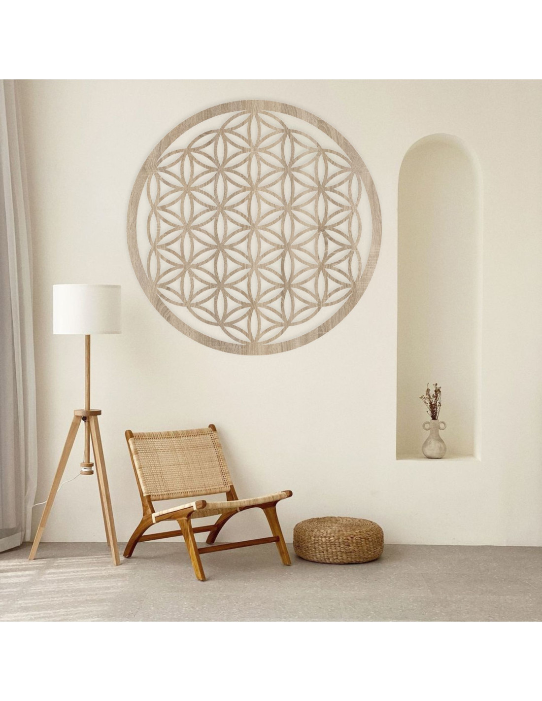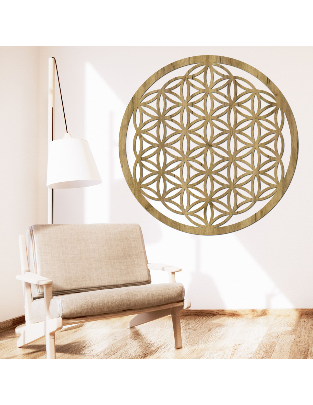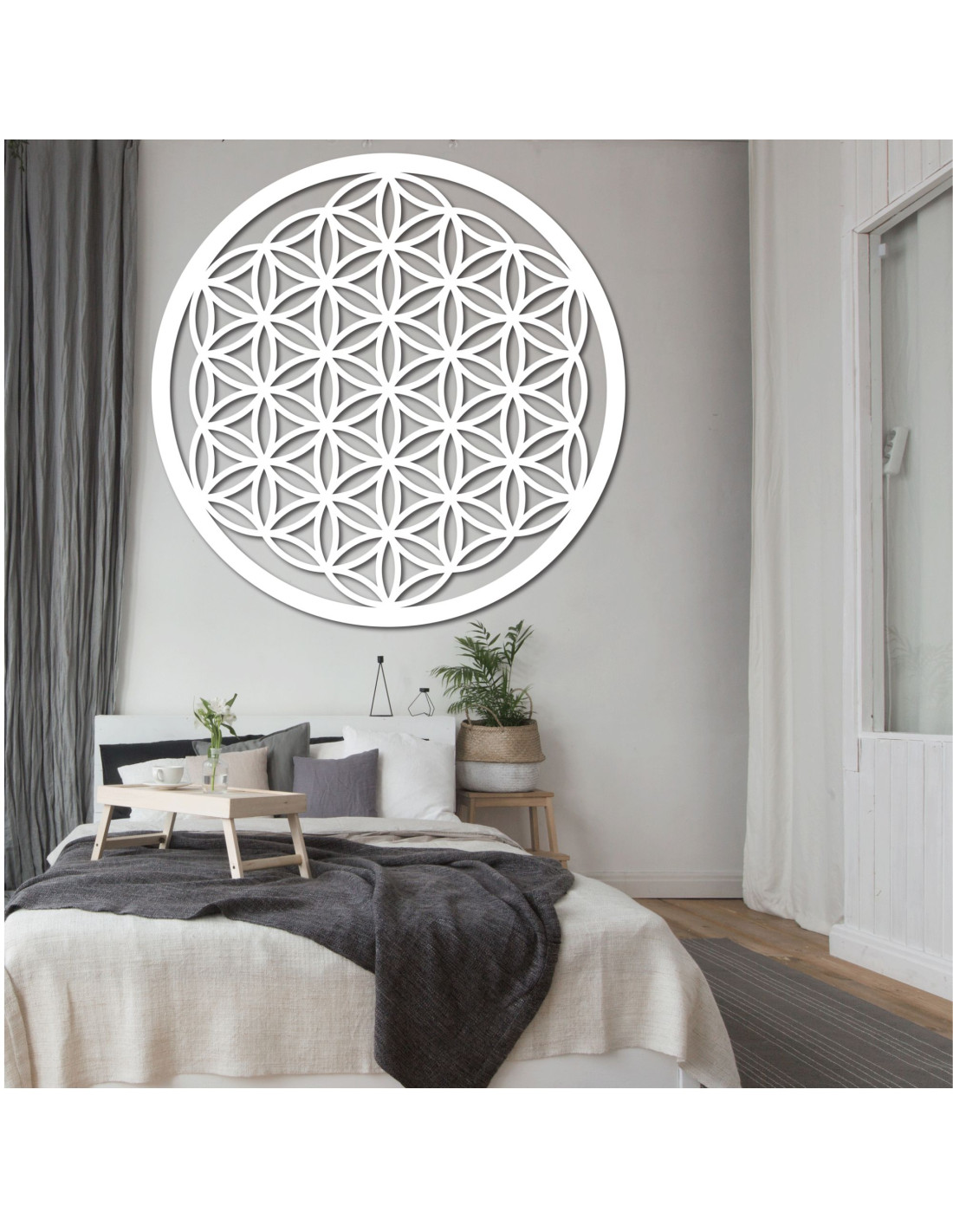 Design této mandaly je inspirován prastarým symbolem života , který se vyskytuje v různých kulturách a představuje základní principy vesmíru a života a věří se , že má schopnost zlepšovat energii prostoru a podporovat vnitřní klid. Květ života je symbol, který představuje harmonii, jednotu a propojenost všeho, co nás obklopuje .