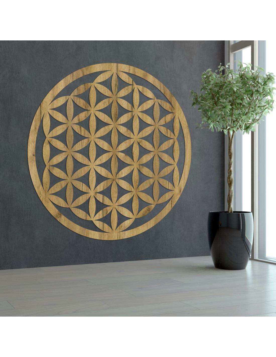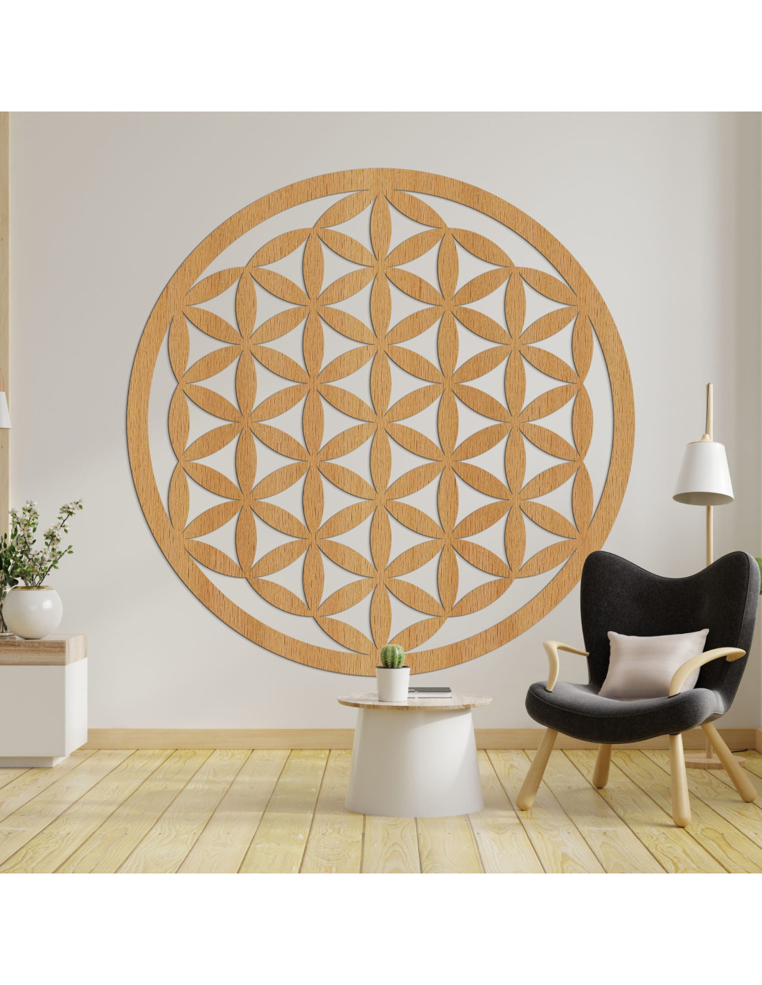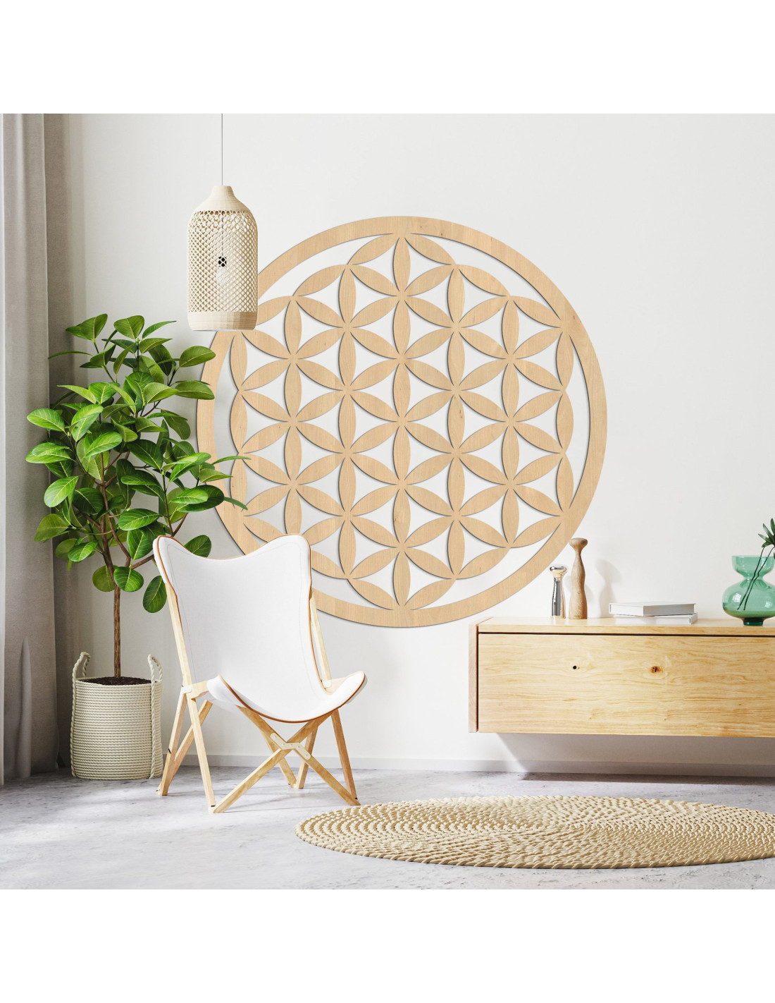 Dřevěná dekorace s motivem květu života oživí váš prostor symbolem jednoty, harmonie a nekonečné energie.