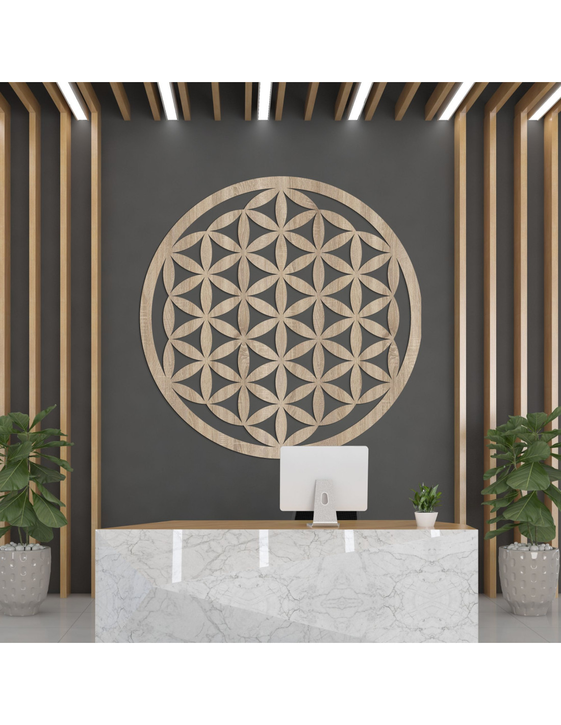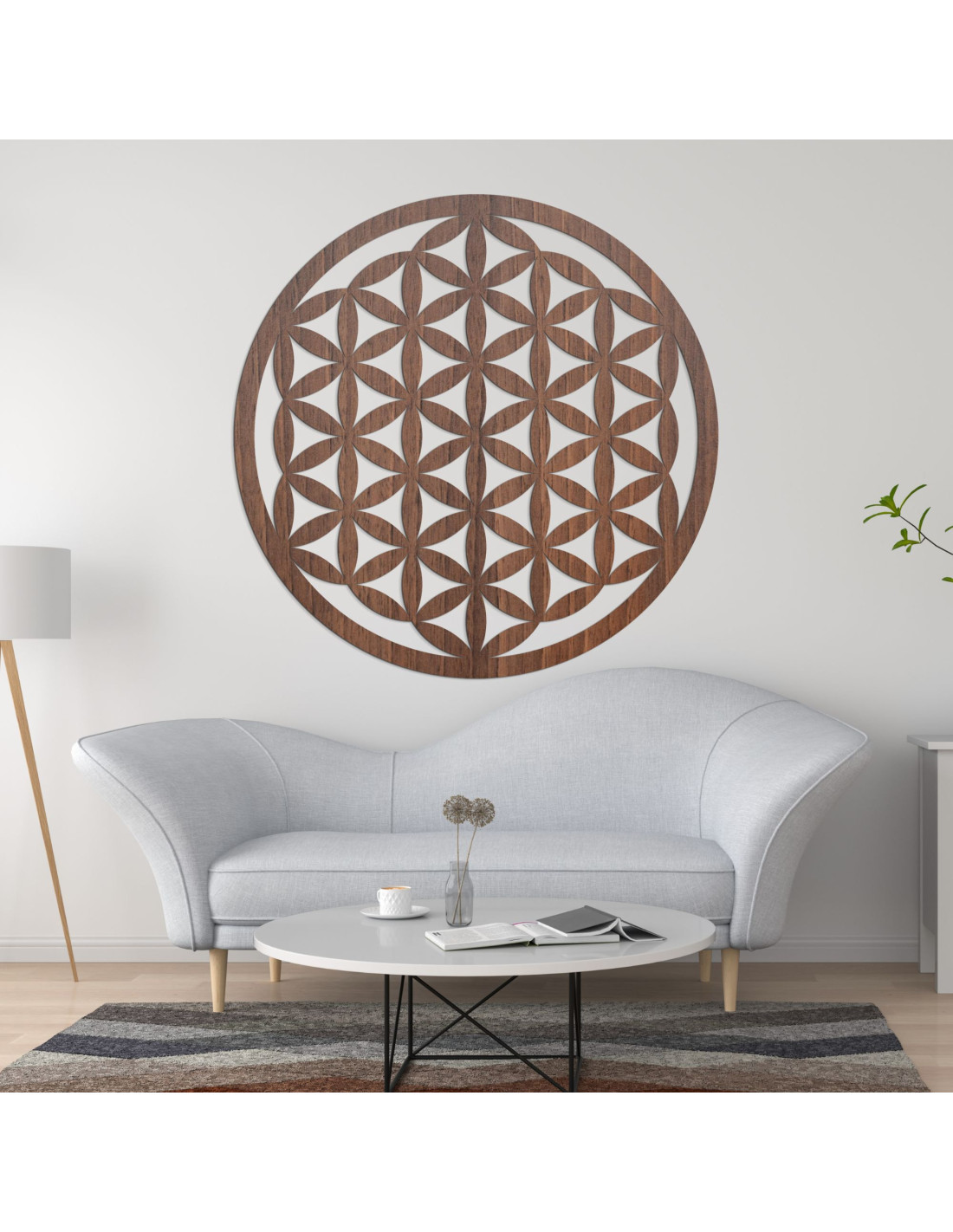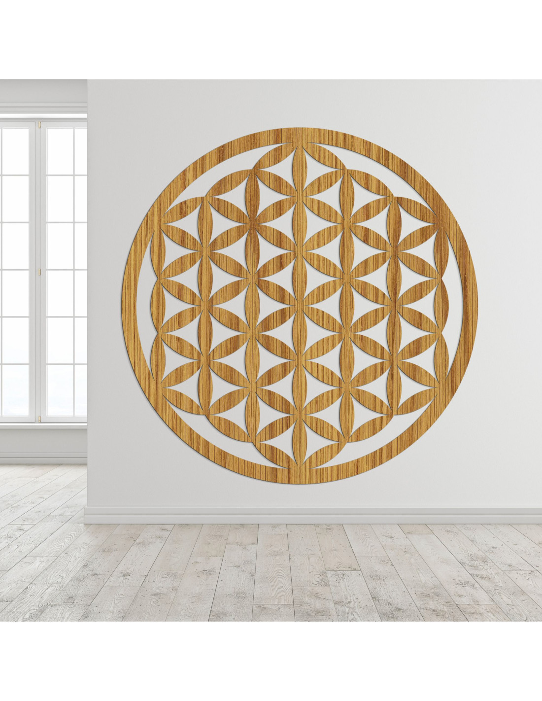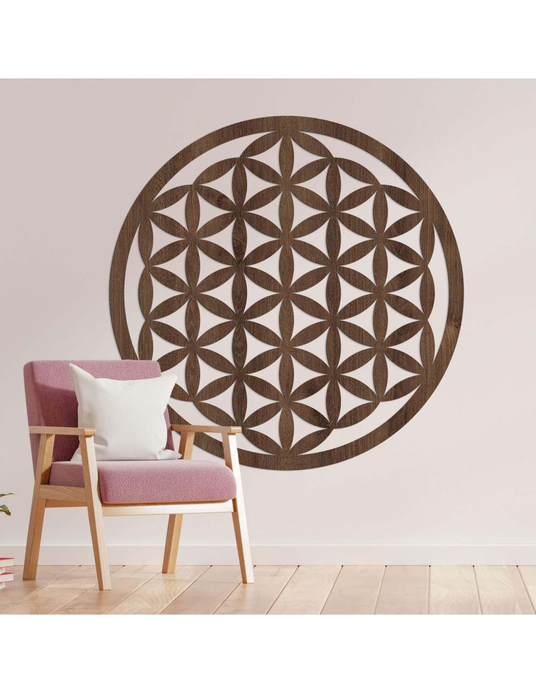 Dřevěná dekorace s motivem květu života oživí váš prostor symbolem jednoty, harmonie a nekonečné energie.