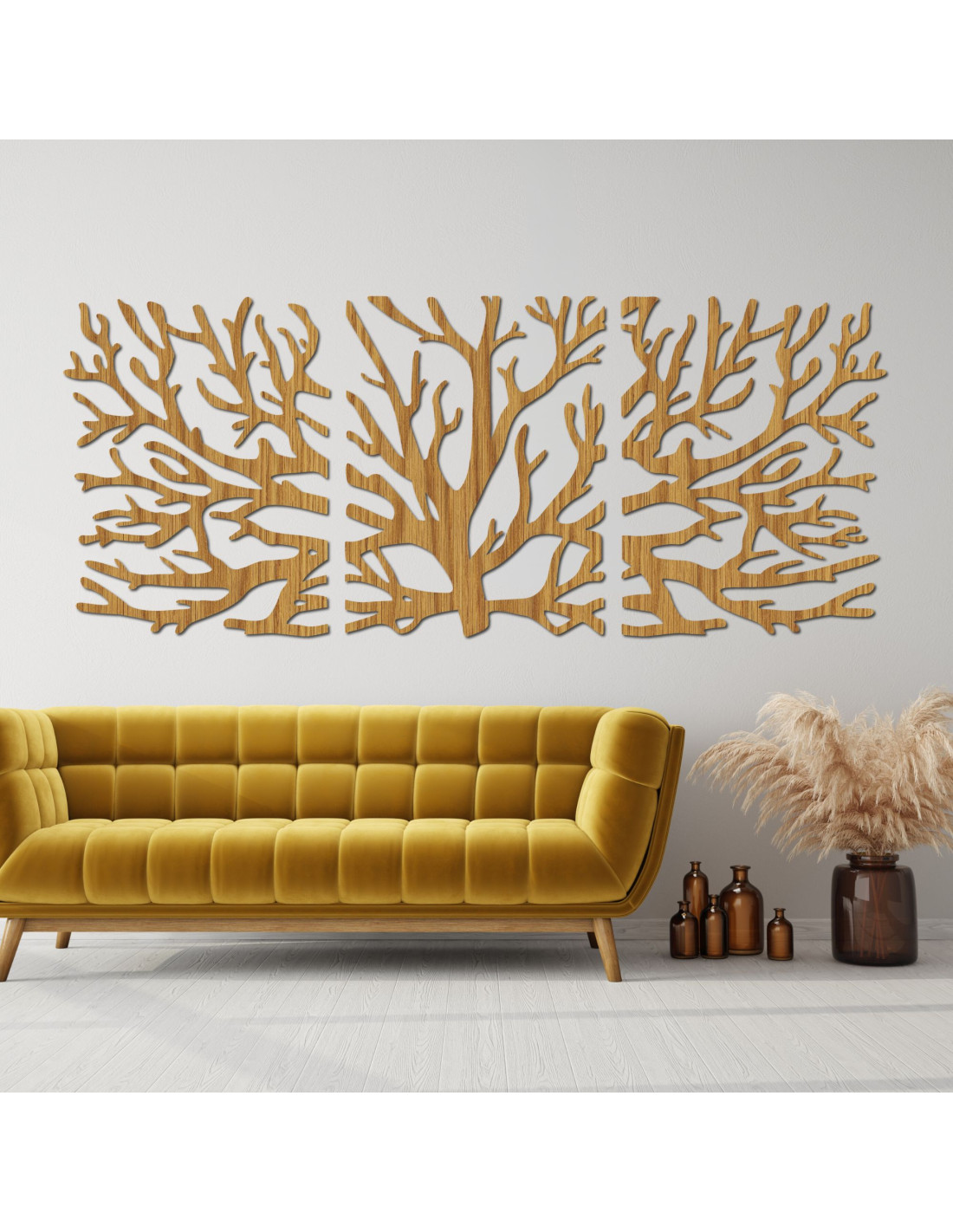 Dřevěný trojdílný obraz Strom – elegance a harmonie pro váš interiér