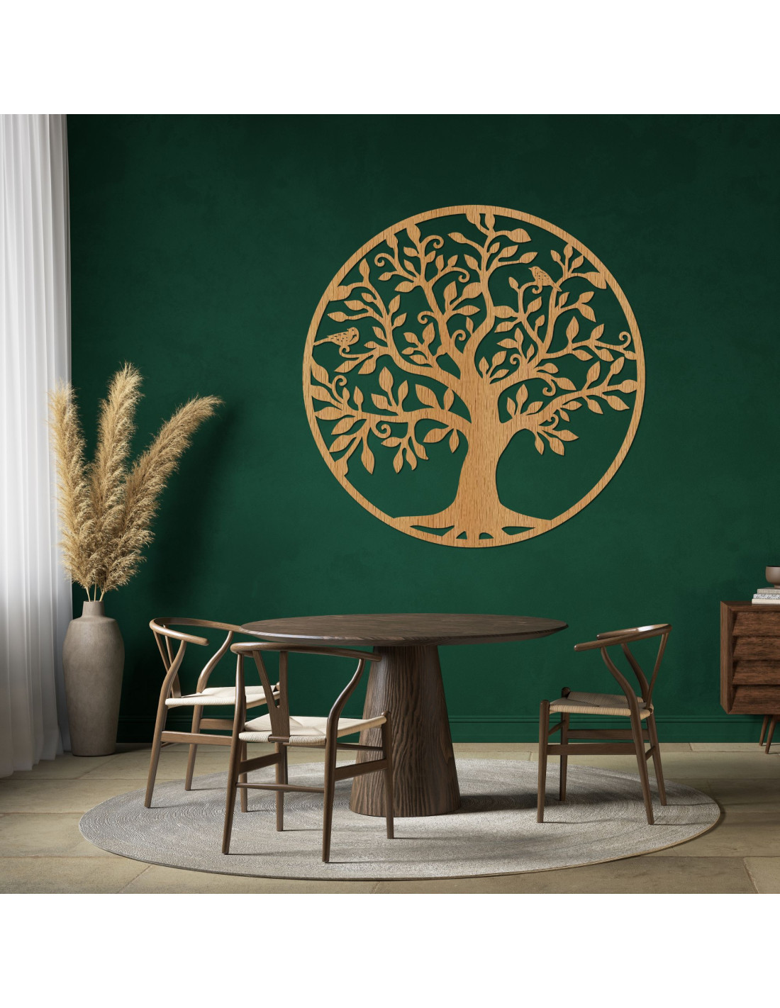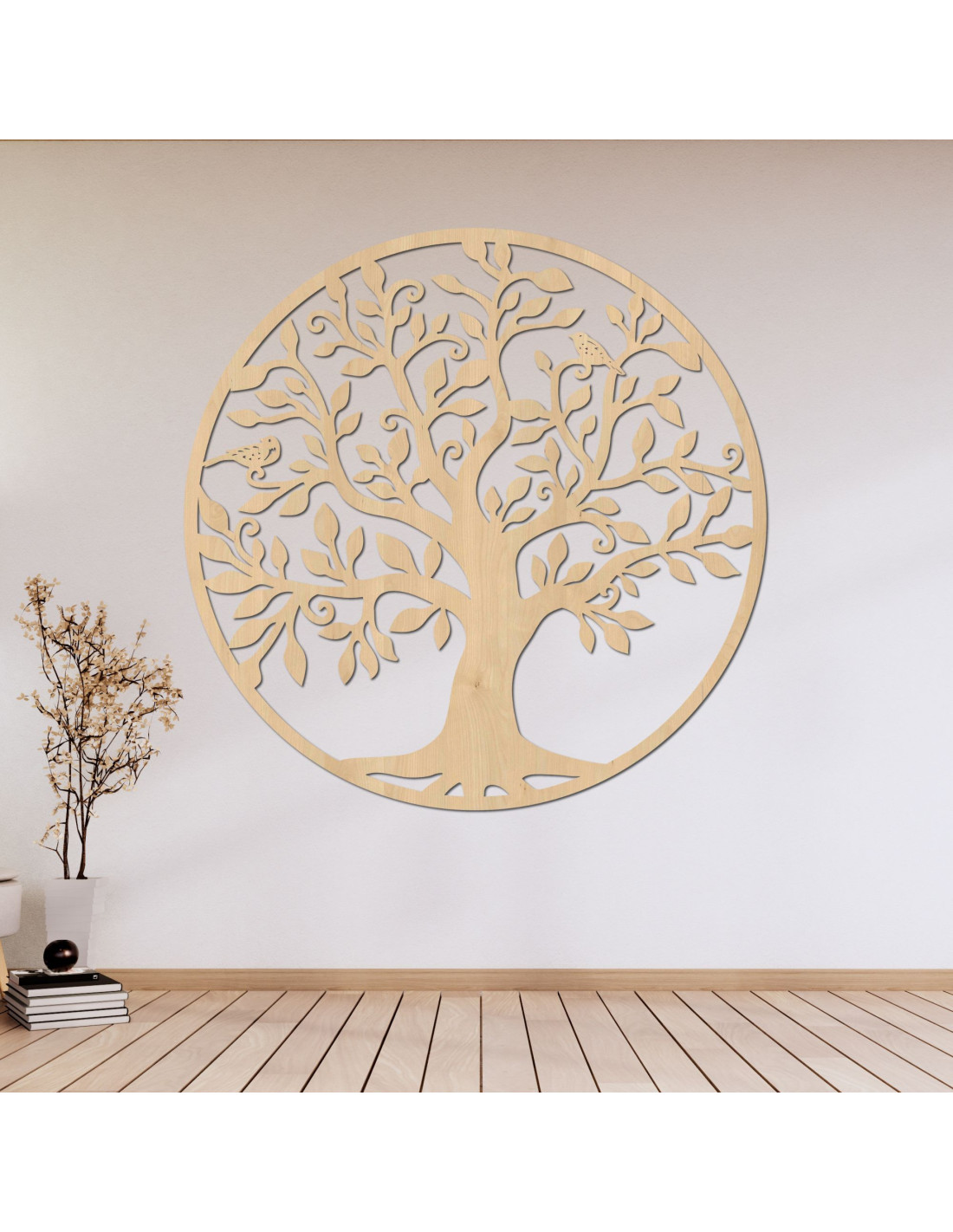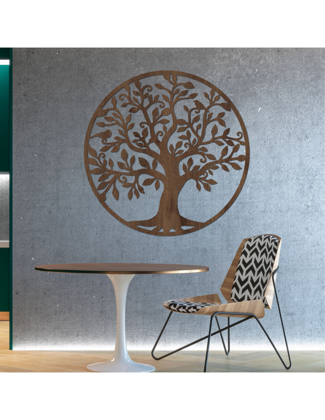 Elegantní kruhová dekorace stromu života, vyřezávaná z kvalitní HDF , spojuje přírodní krásu s uměleckým zpracováním.