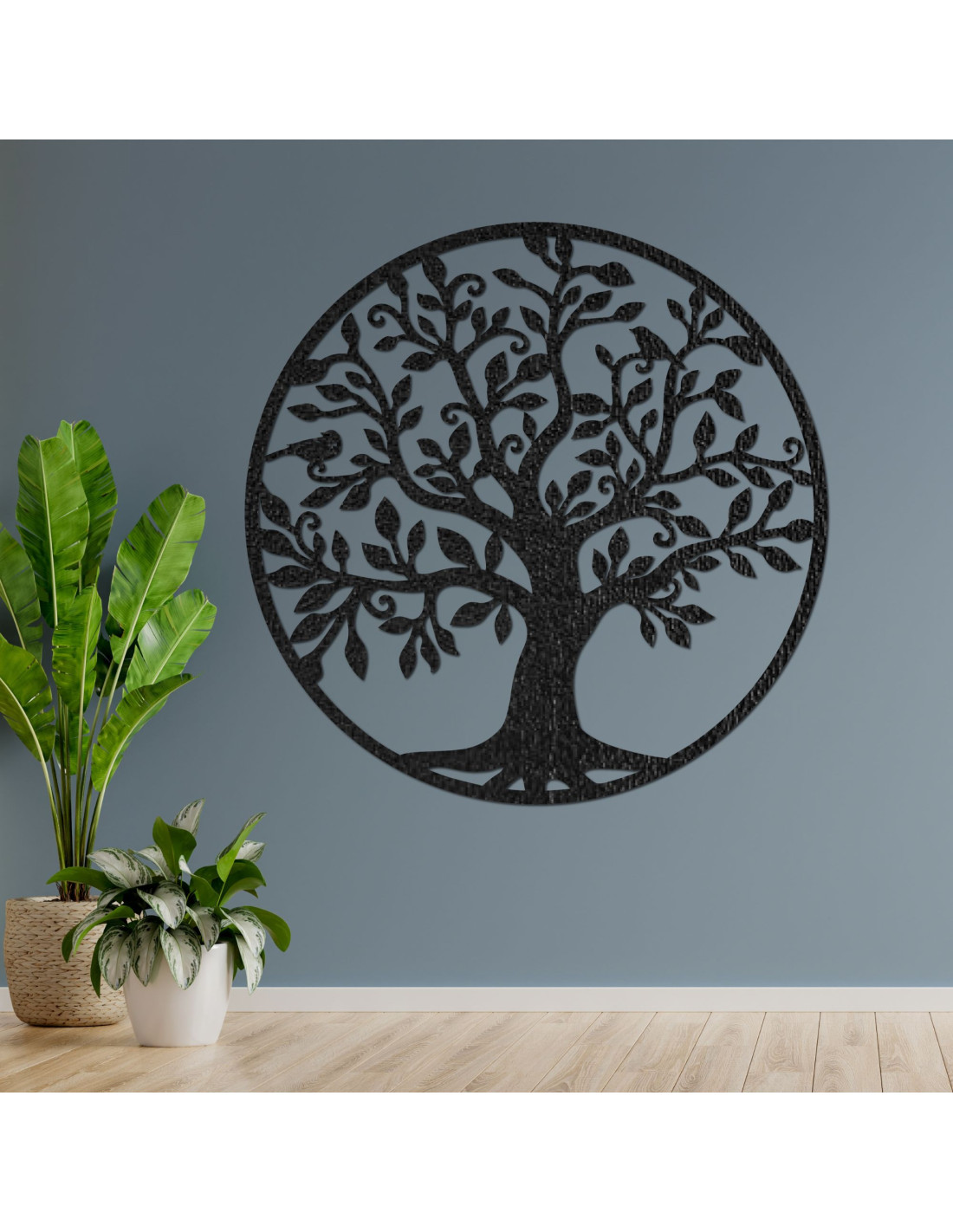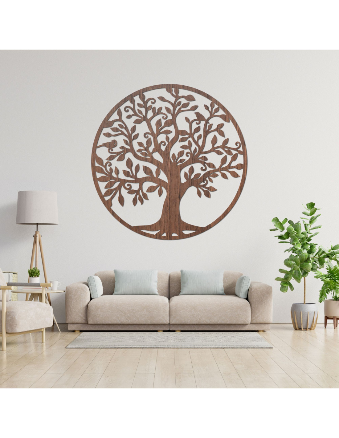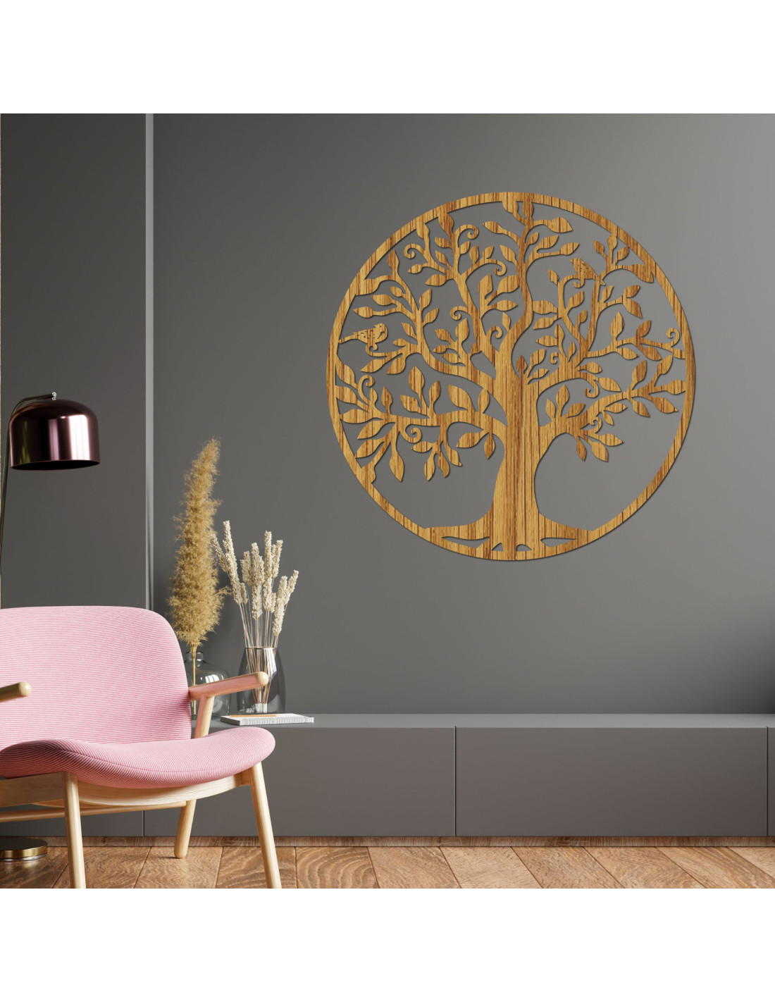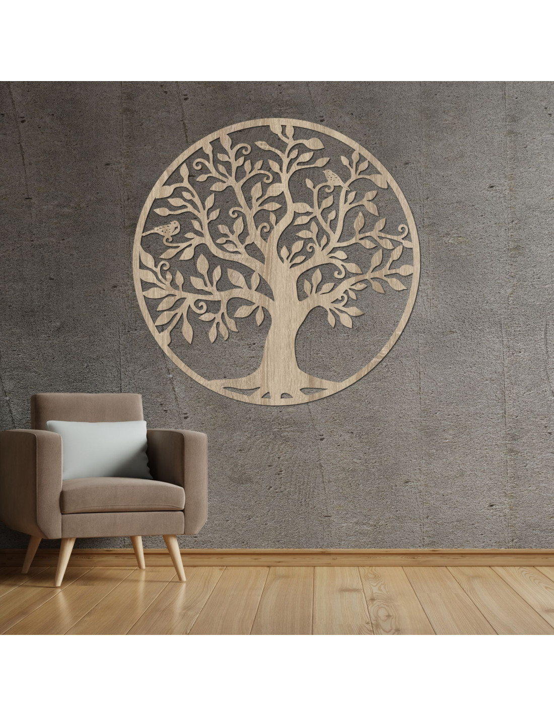 Elegantní kruhová dekorace stromu života, vyřezávaná z kvalitní HDF , spojuje přírodní krásu s uměleckým zpracováním.