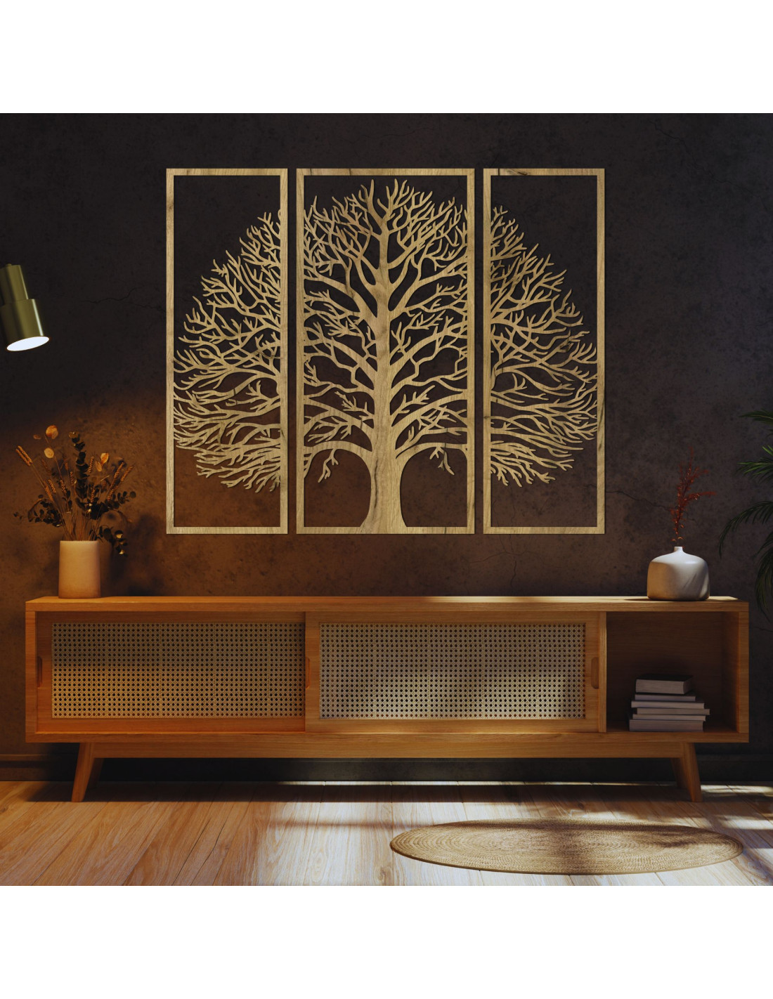 Třídílná dřevěná dekorace Strom života je elegantním a nadčasovým doplňkem, který dodá vašemu domovu harmonii, klid a styl.