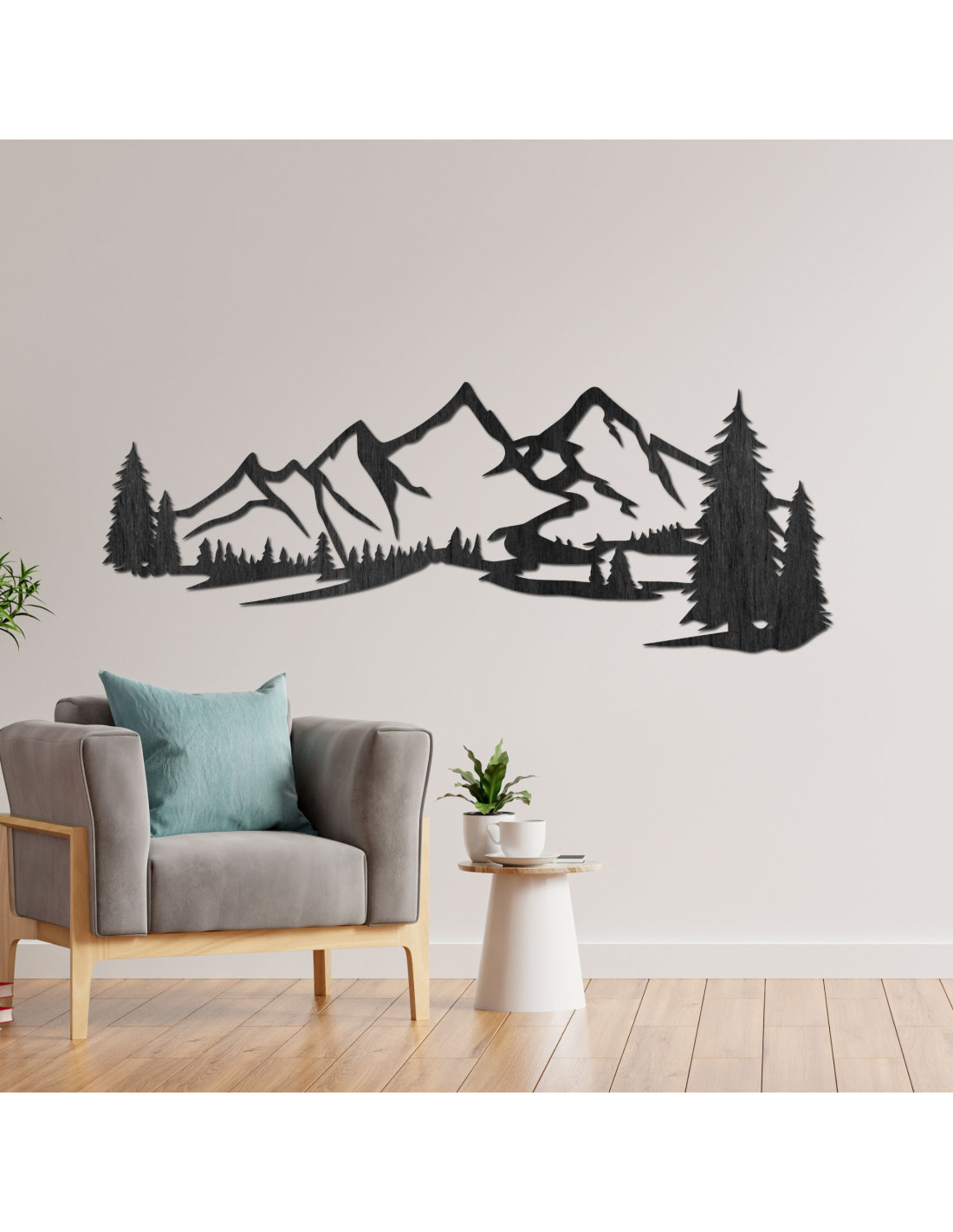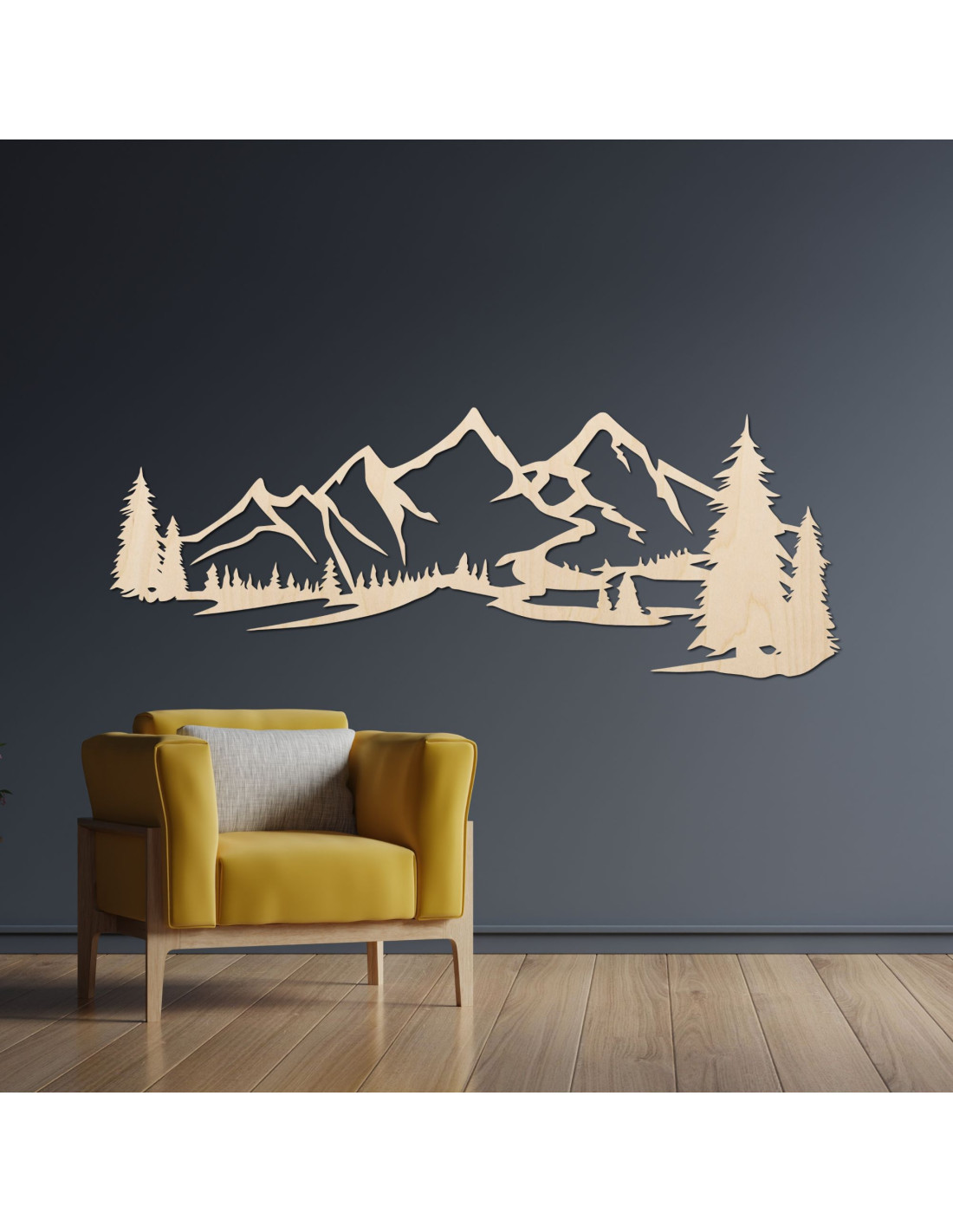 Dřevěná dekorace na zeď s motivem horské krajiny je moderním a elegantním doplňkem , který přinese do každého interiéru klidný dotek přírody.