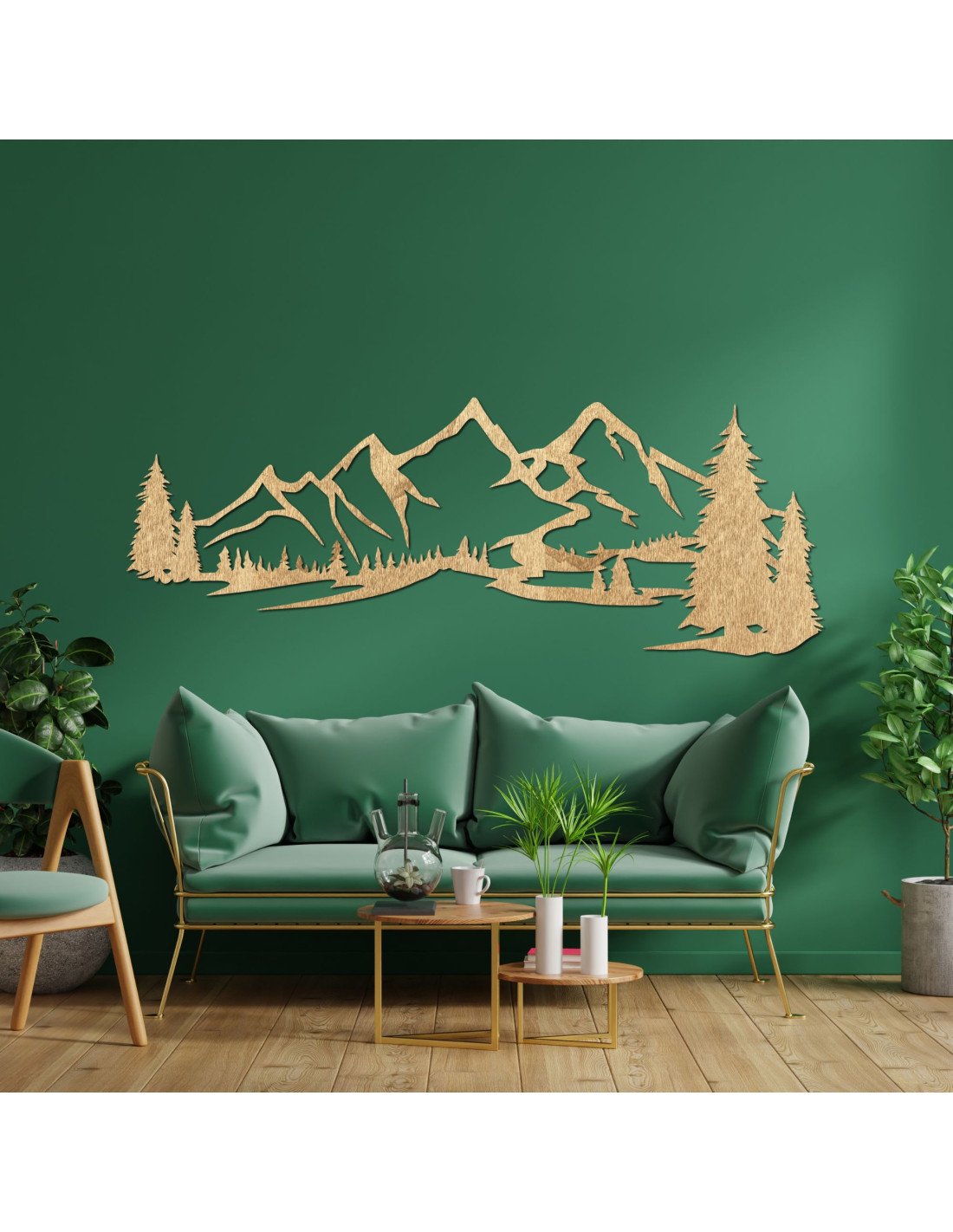 Dřevěné nástěnné umění s motivem hory, velká krajina lesa - dekorace do interiéru - TRARTE