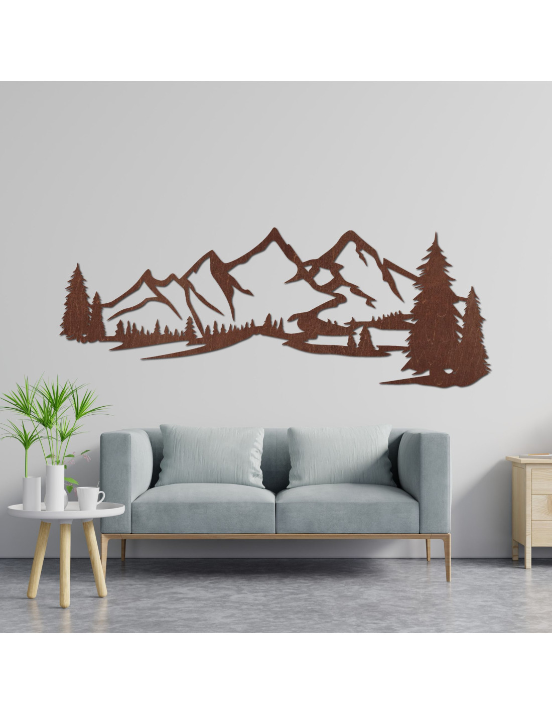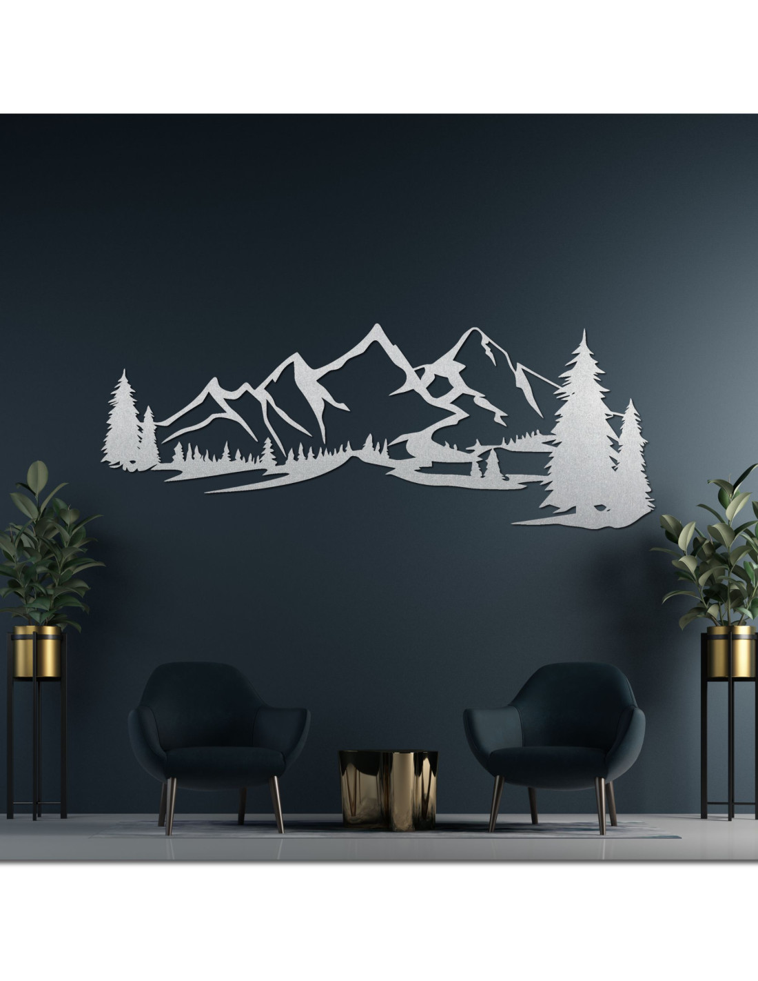 Tato scenérie hor s jehličnatými stromy je vytvořena pomocí laserového řezání pro precizní detaily a pečlivě dokončena, aby vytvořila čistý a výrazný vizuální efekt.