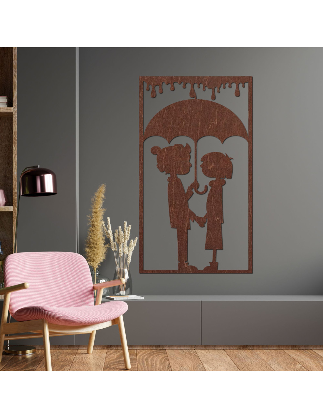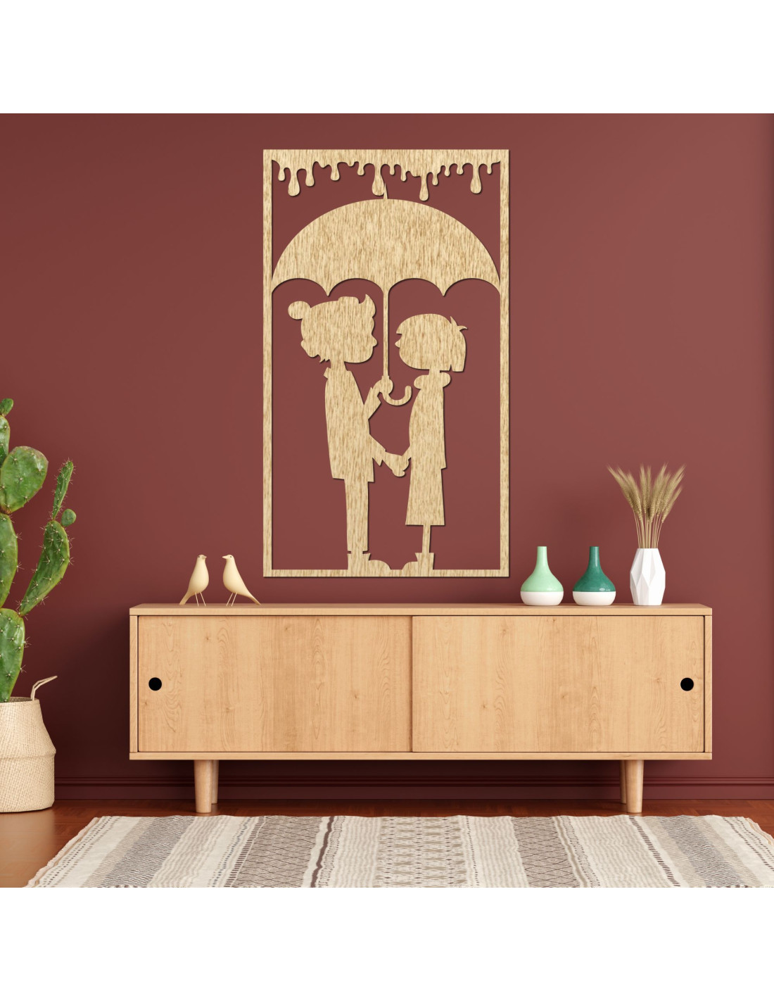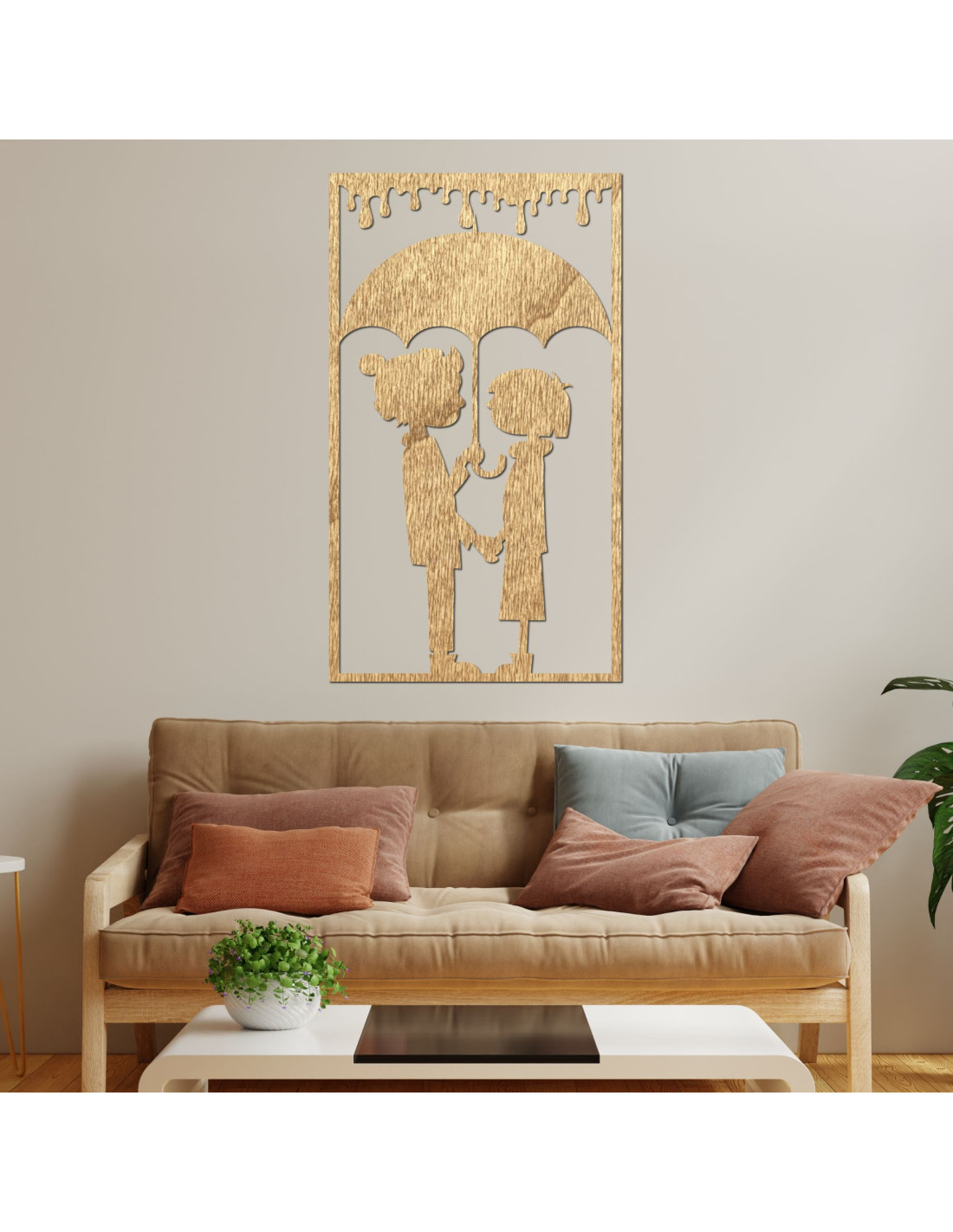 Elegantní dřevěná dekorace s motivem postav pod deštníkem v sobě spojuje jednoduchost a silné emocionální poselství. Tato nástěnná dekorace je vhodná pro vyjádření pocitů, jako je láska, podpora nebo sounáležitost. Přírodní materiál navíc vnáší do prostoru pocit tepla a autentičnosti. Hodí se do moderních i rustikálních interiérů, kde vytvoří harmonickou atmosféru.