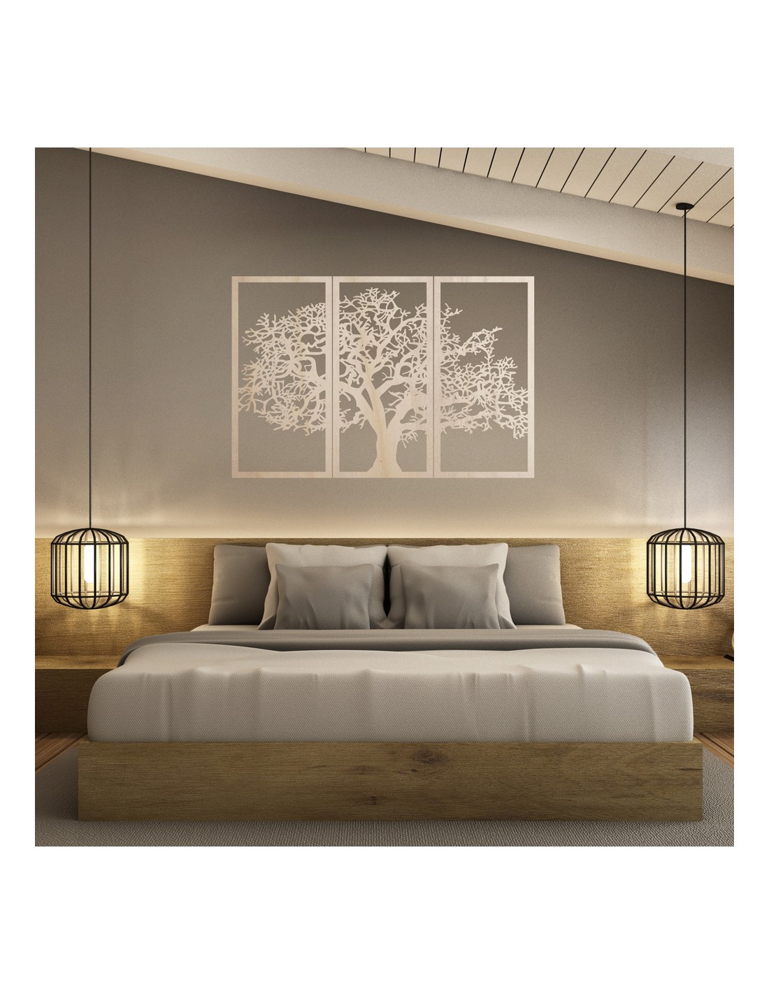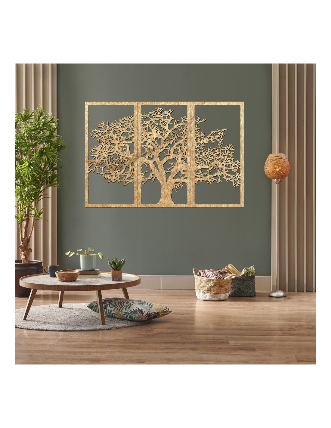 Dřevěný nástěnný obraz Strom života: Sada 3 panelů