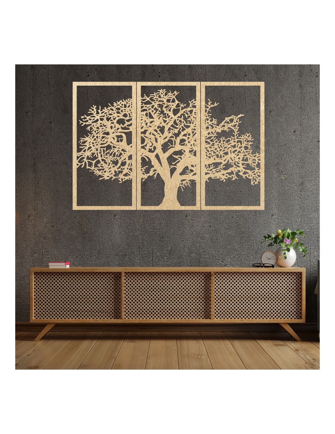 Dřevěný nástěnný obraz Strom života: Sada 3 panelů | SKOMBER