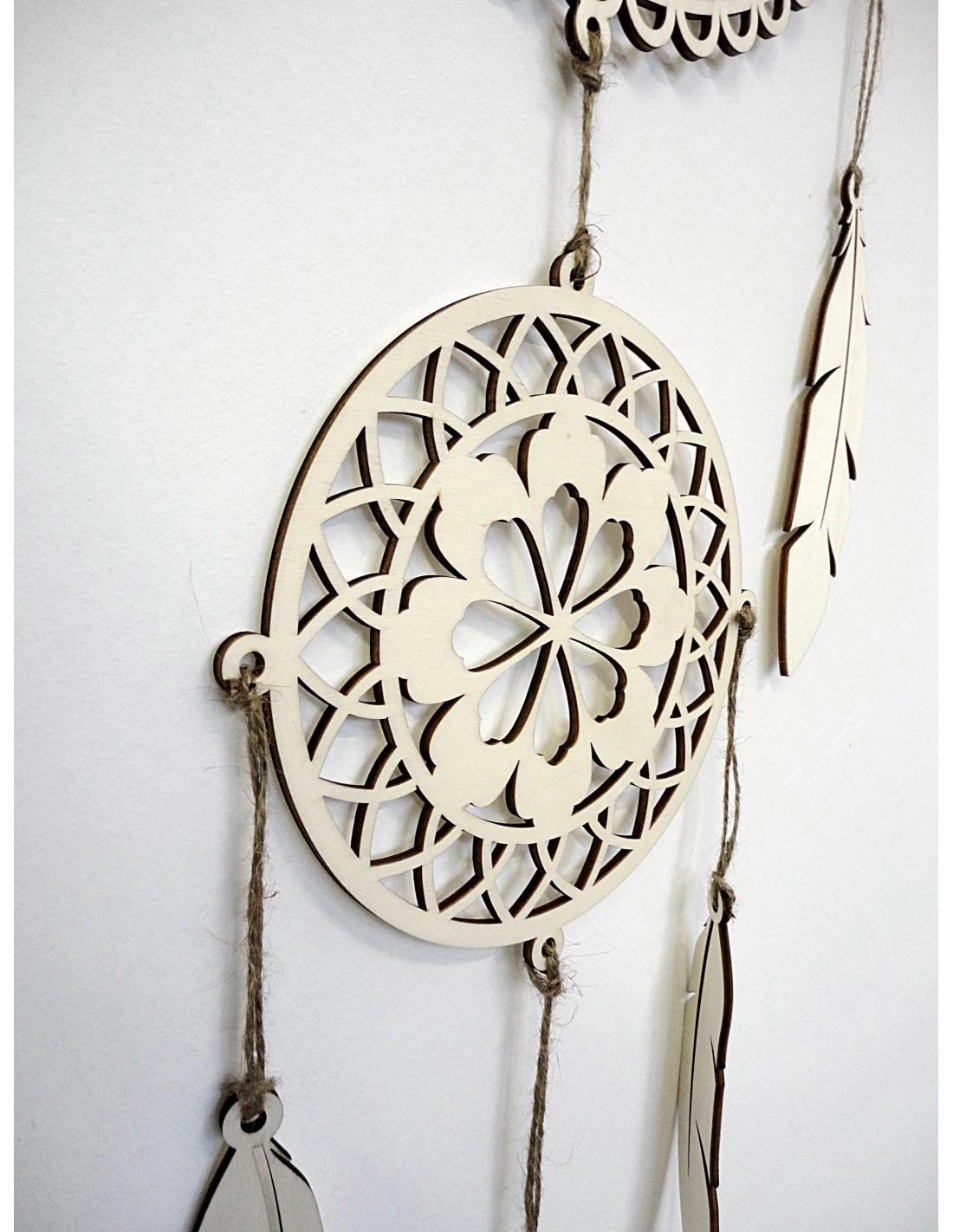 Celý lapač snů je pečlivě vyříznut z kvalitní topolové překližky o tloušťce 5 mm .