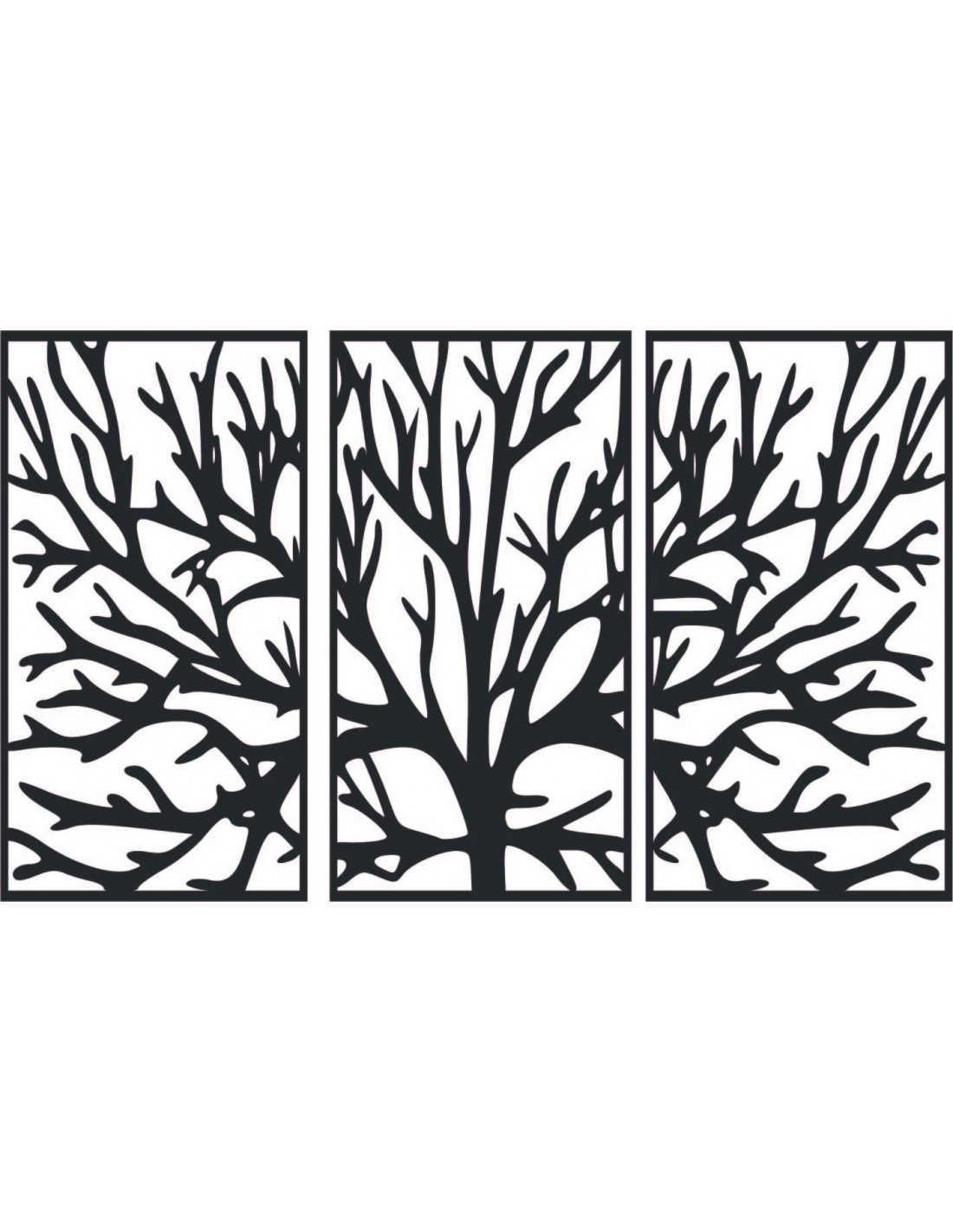 Obraz představuje tři panely s abstraktními vzory stromu, které znázorňují větve nebo stromové větve.