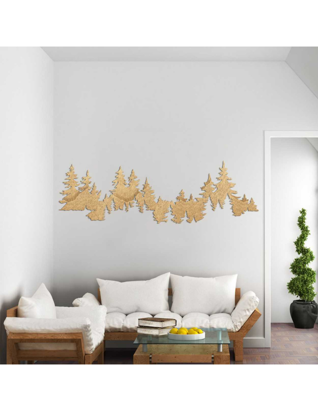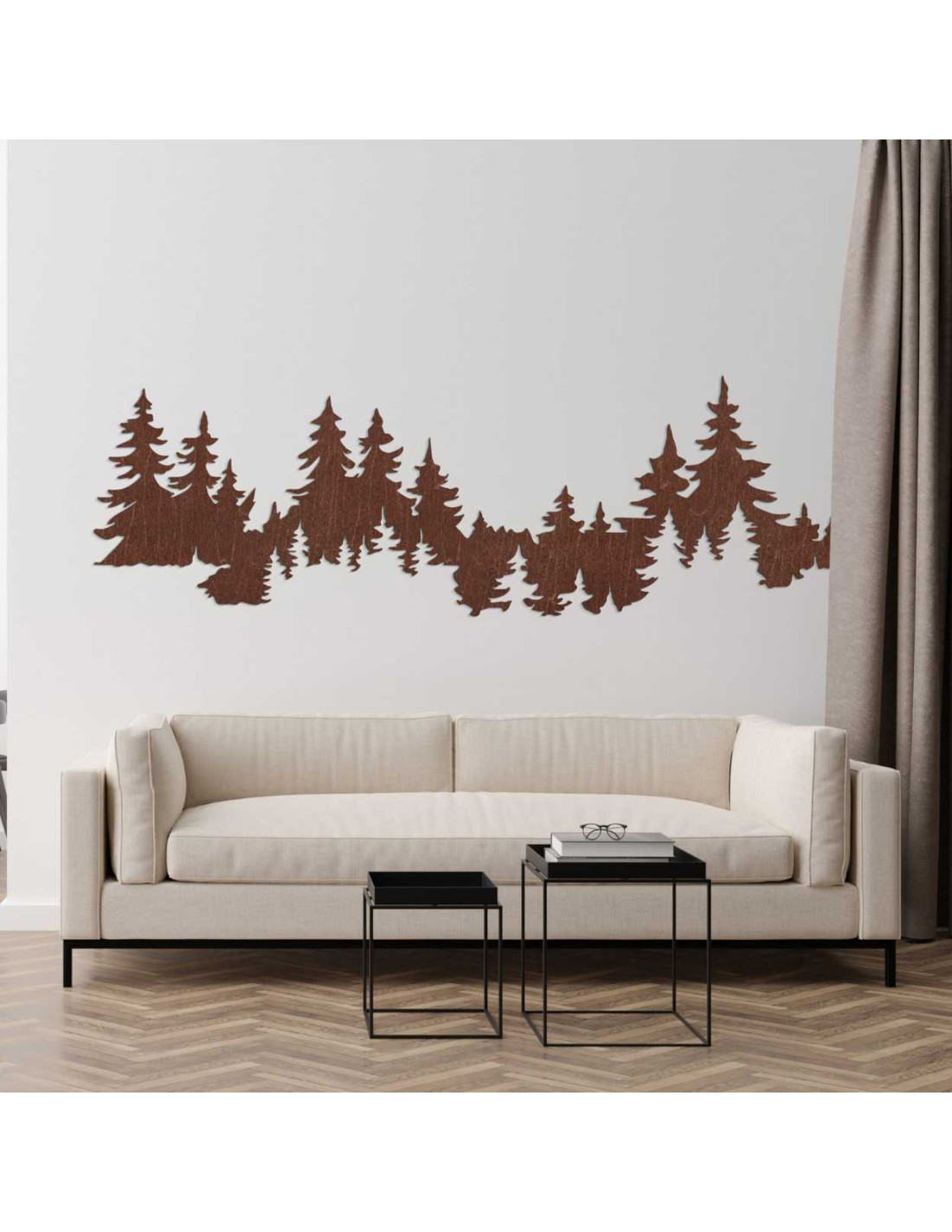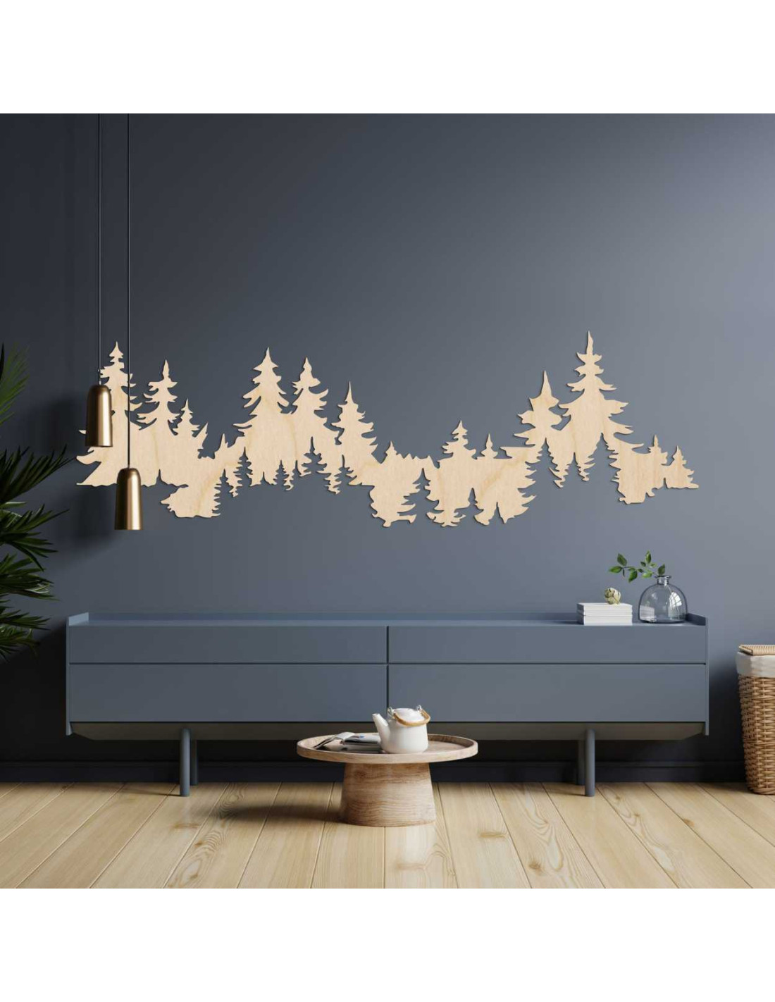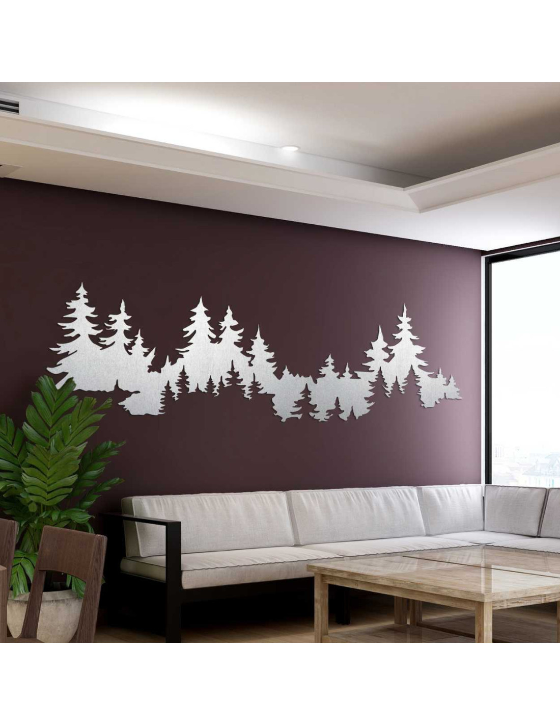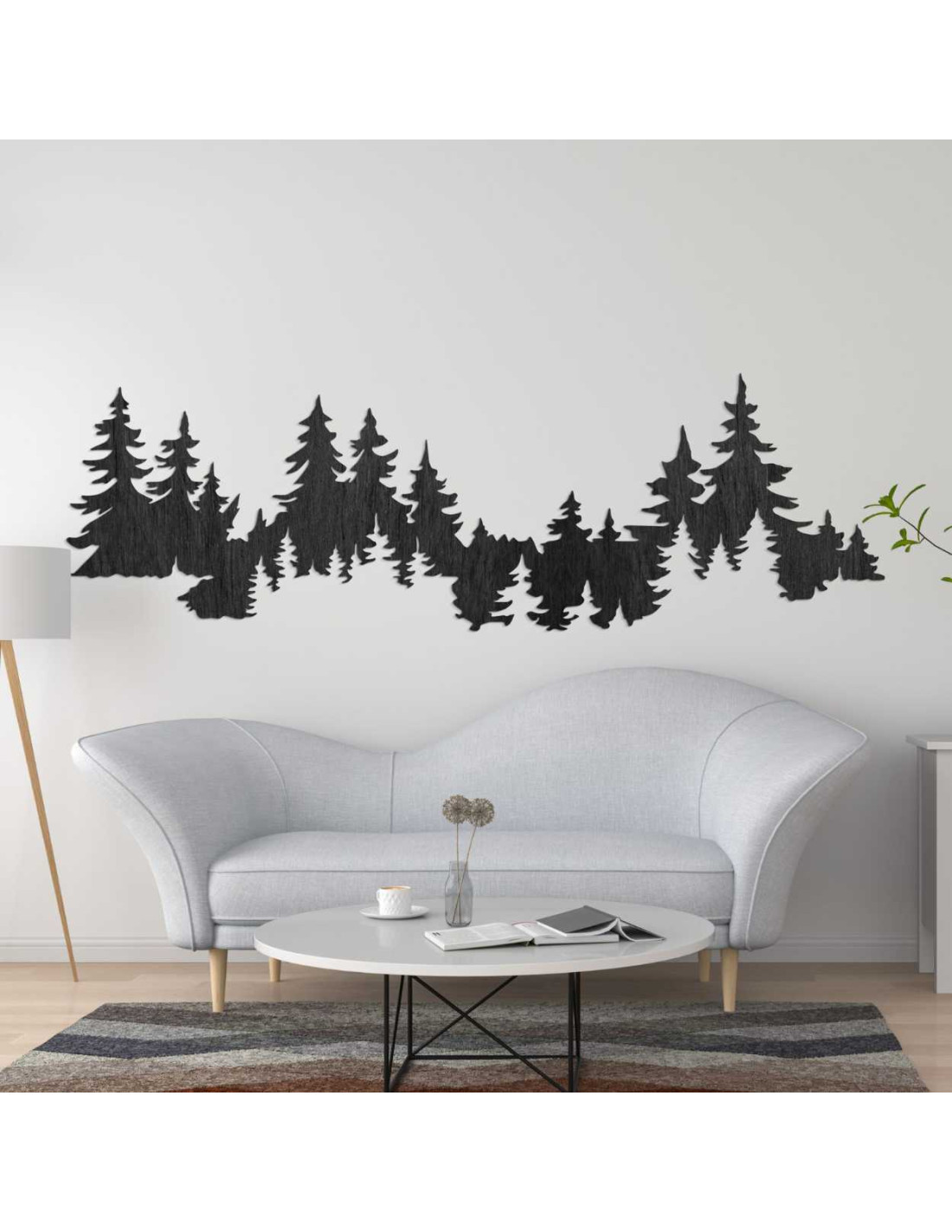 Motiv lesa vytváří harmonický kontrast mezi přírodou a moderním interiérovým designem.