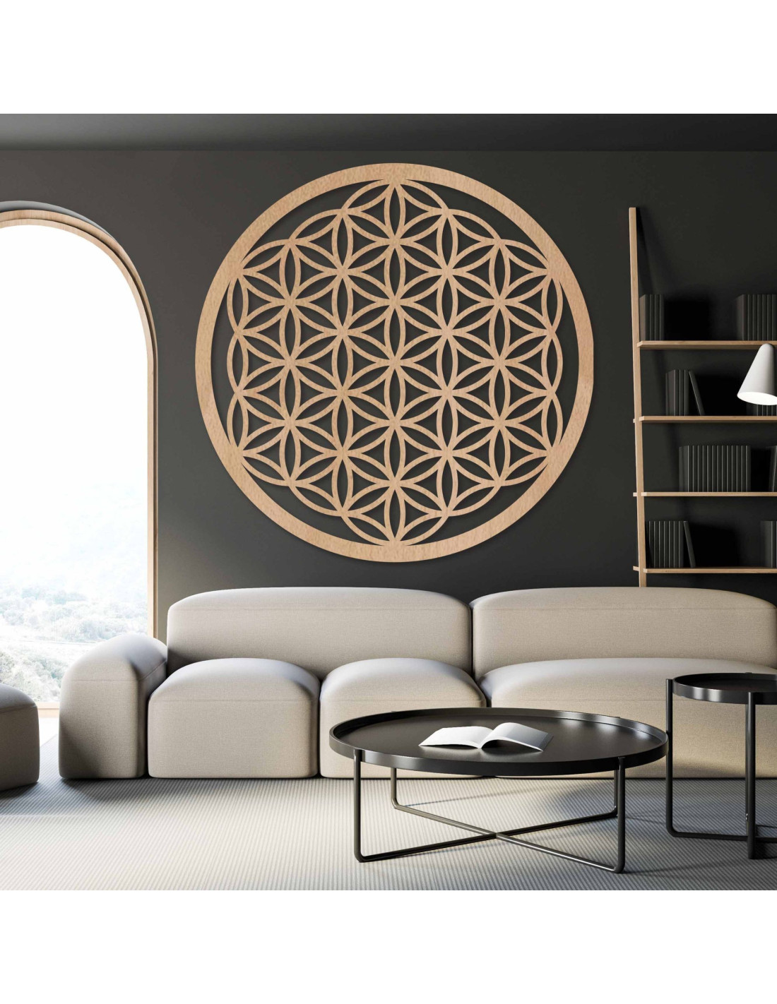 Dřevěná nástěnná dekorace Květ života posvátná geometrie mandala | FOGO