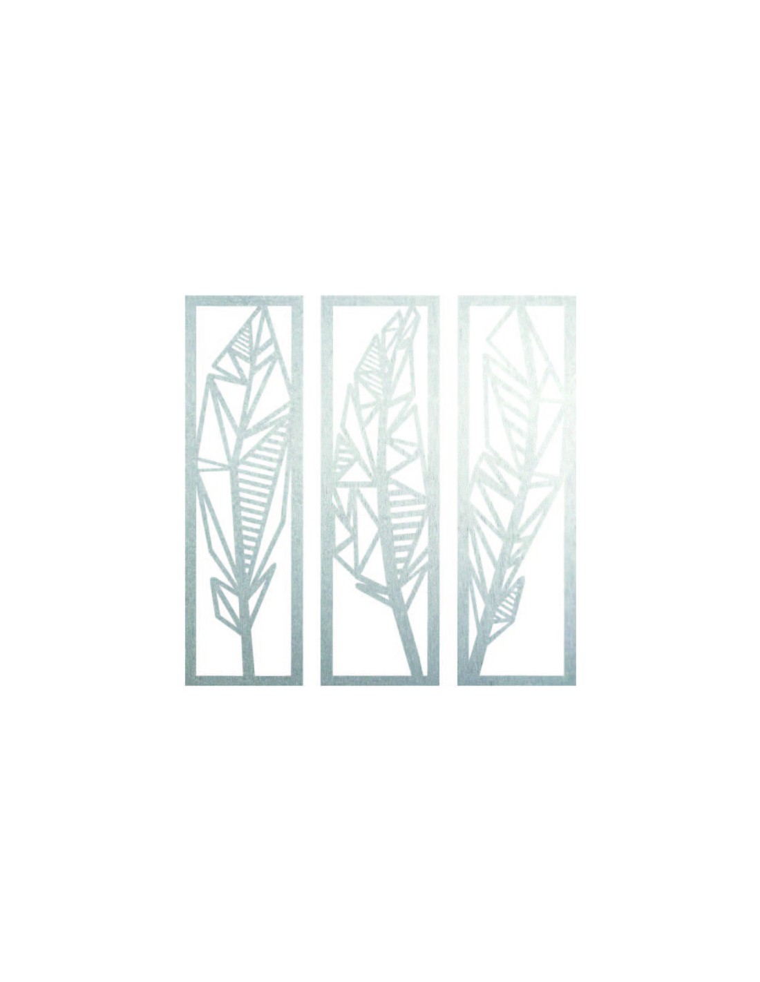 Obraz je složen ze tří částí a uvedeny celkové rozměry dekorace, jsou včetně předpokládaných mezer mezi jednotlivými částmi po nalepení na zeď (jako na obrázku).